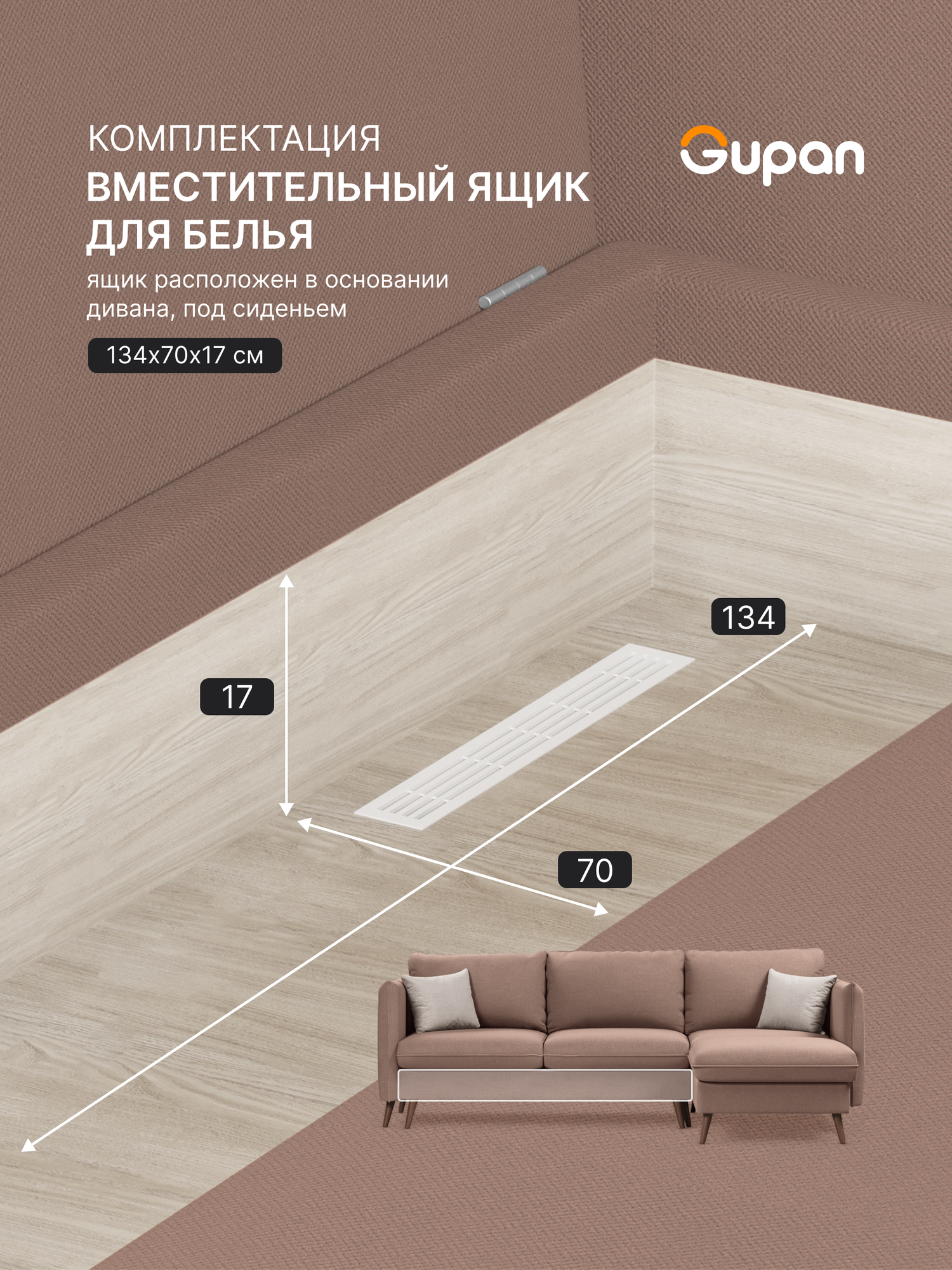 Диван угловой Gupan Делорм Велюр Amigo Terra, раскладной, механизм еврокнижка, беспружинный, с ящиком для белья