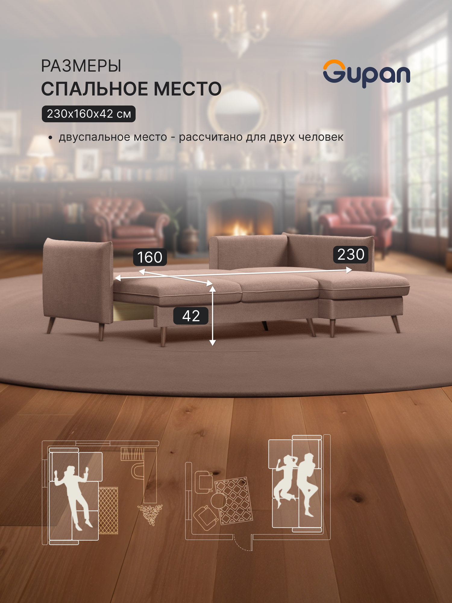 СохранитьДиван угловой Gupan Делорм Велюр Amigo Cocoa, раскладной, механизм еврокнижка, беспружинный, с ящиком для белья интересное: