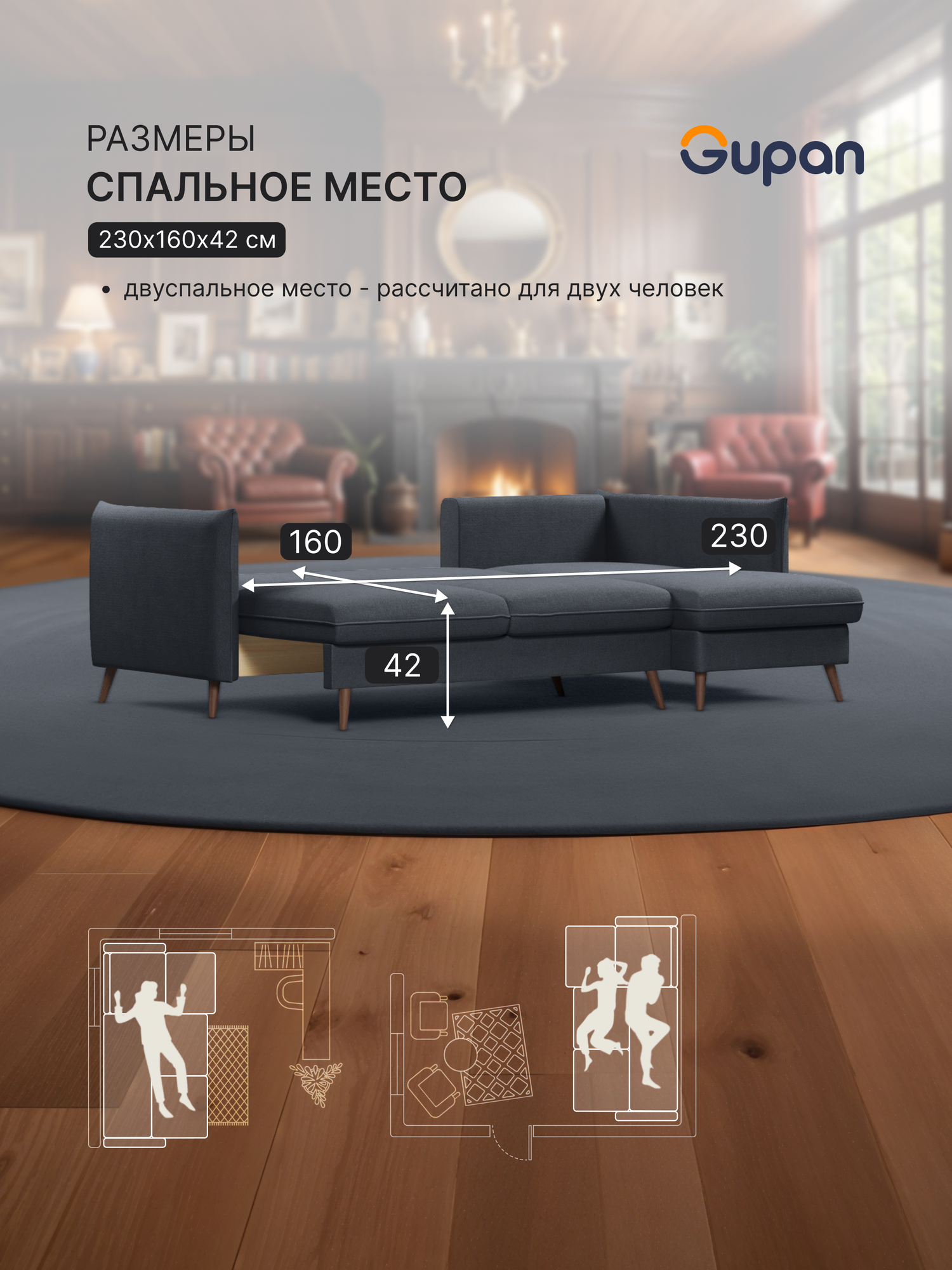 СохранитьДиван угловой Gupan Делорм Велюр Amigo Grafit, раскладной, механизм еврокнижка, беспружинный, с ящиком для белья интересное: