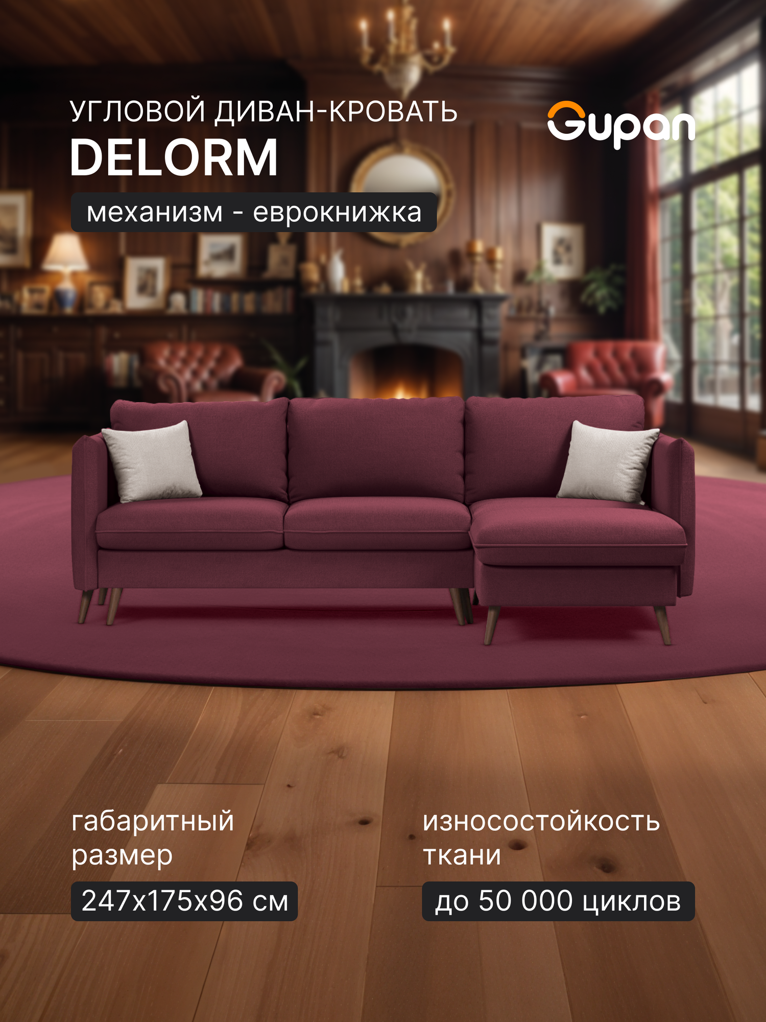 Диван угловой Gupan Делорм Велюр Amigo Berry, раскладной, механизм еврокнижка, беспружинный, с ящиком для белья