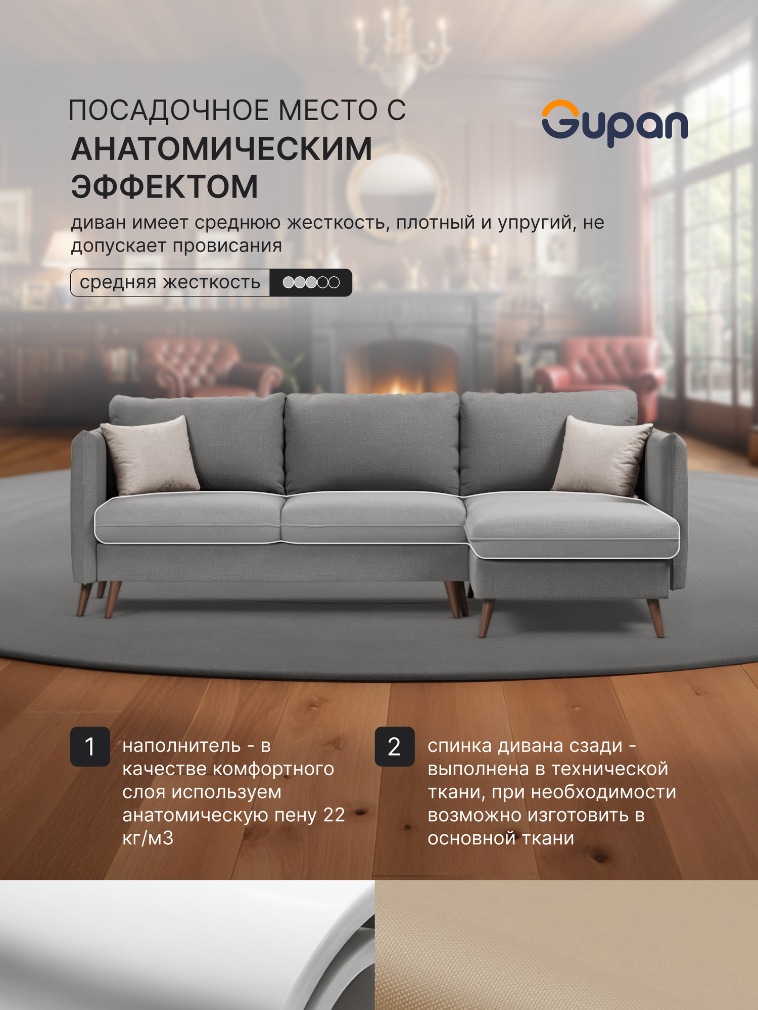 СохранитьДиван угловой Gupan Делорм Велюр Amigo Grey, раскладной, механизм еврокнижка, беспружинный, с ящиком для белья интересное: