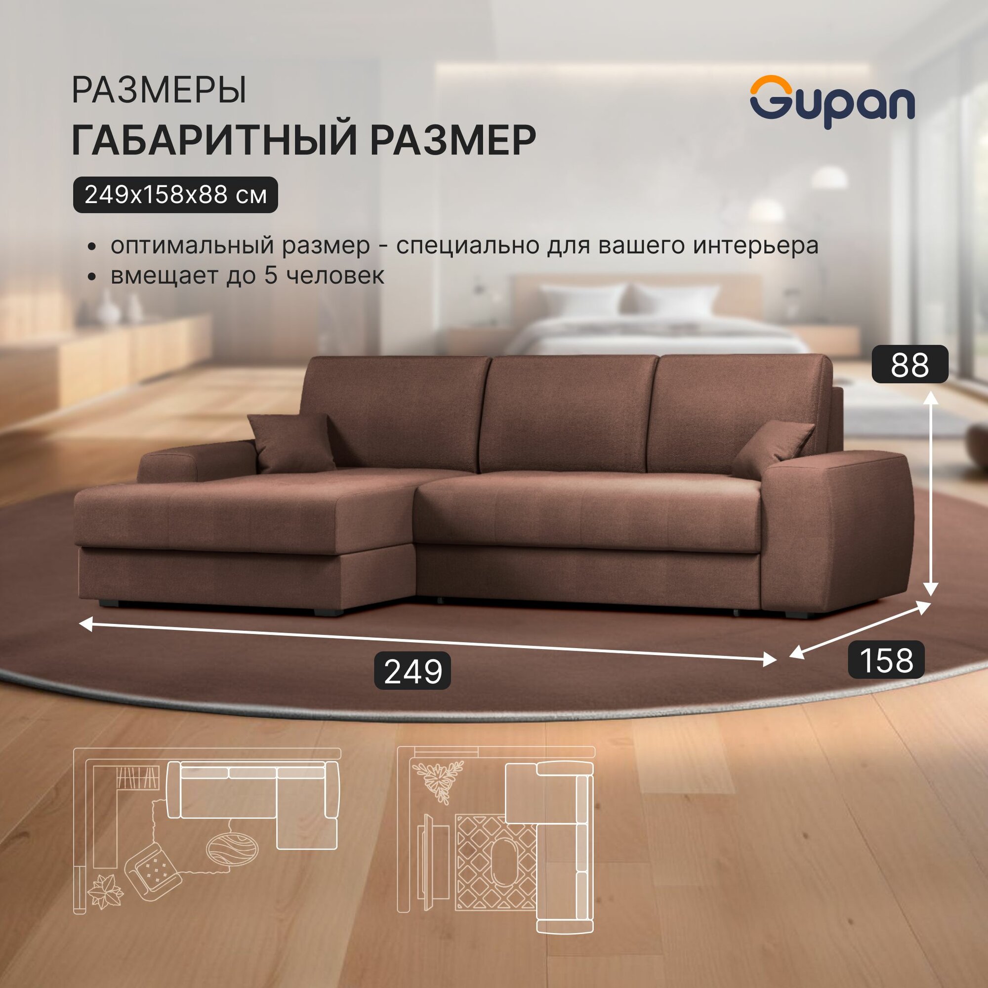 СохранитьДиван угловой Gupan Элион / Коста Велюр Amigo Brown, раскладной, механизм еврокнижка, независимые пружины, с ящиком для белья интересное: