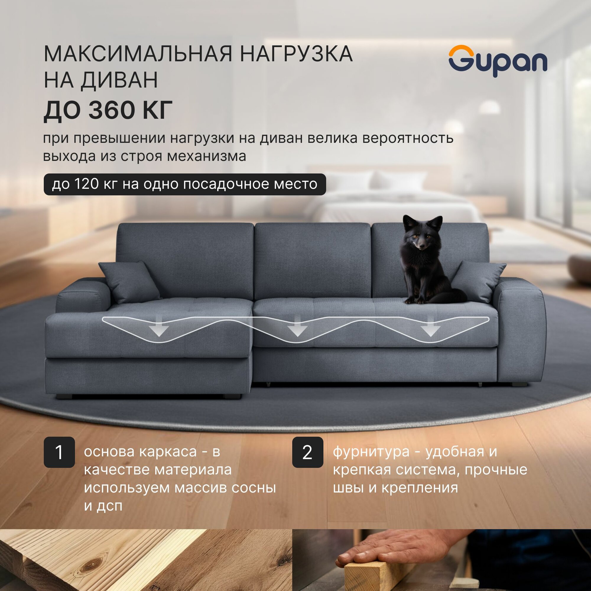 СохранитьДиван угловой Gupan Элион / Коста Велюр Amigo Grafit, раскладной, механизм еврокнижка, независимые пружины, с ящиком для белья интересное: