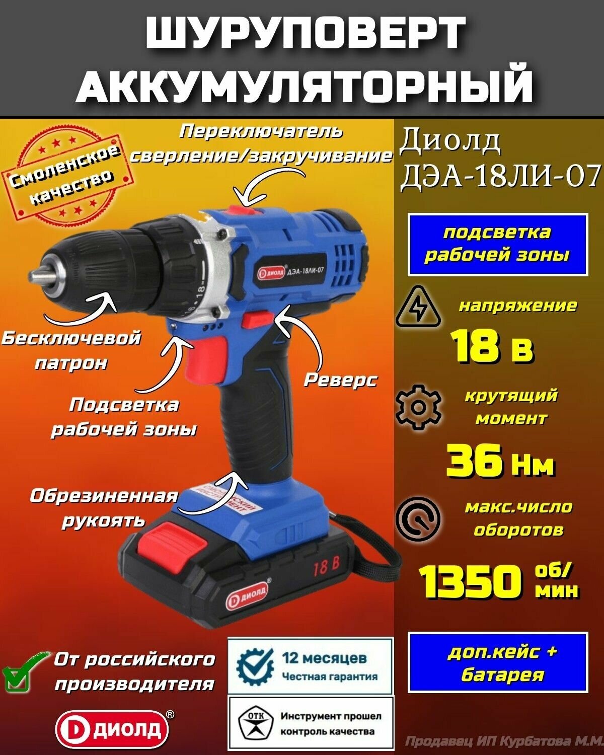 СохранитьАккумуляторная дрель-шуруповерт диолд ДЭА-18ЛИ-07 интересное: