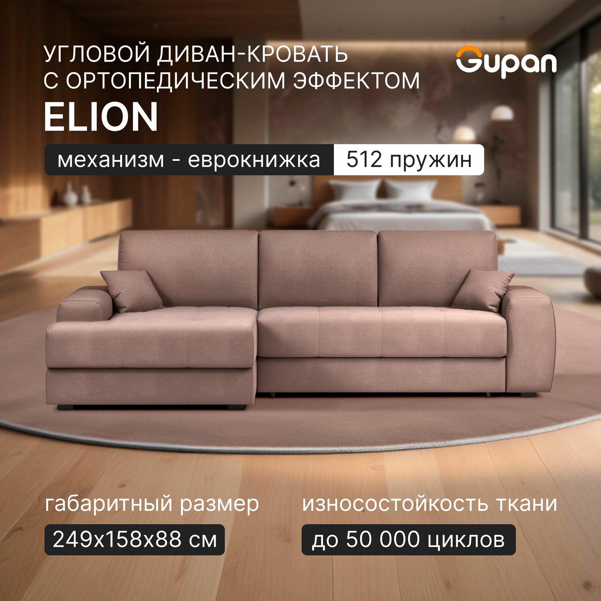 Диван угловой Gupan Элион / Коста Велюр Amigo Dimrose, раскладной, механизм еврокнижка, независимые пружины, с ящиком для белья