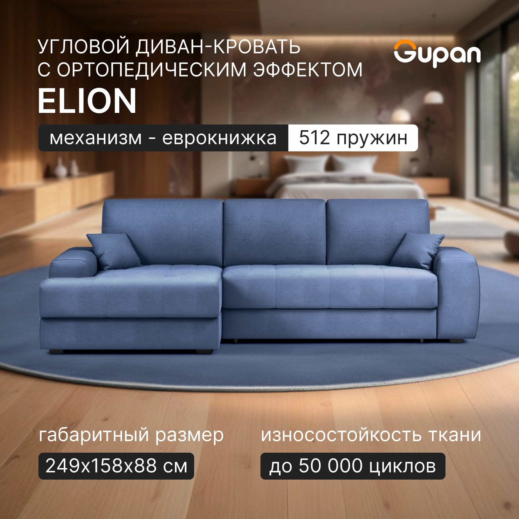 СохранитьДиван угловой Gupan Элион / Коста Велюр Amigo Navy, раскладной, механизм еврокнижка, независимые пружины, с ящиком для белья интересное: