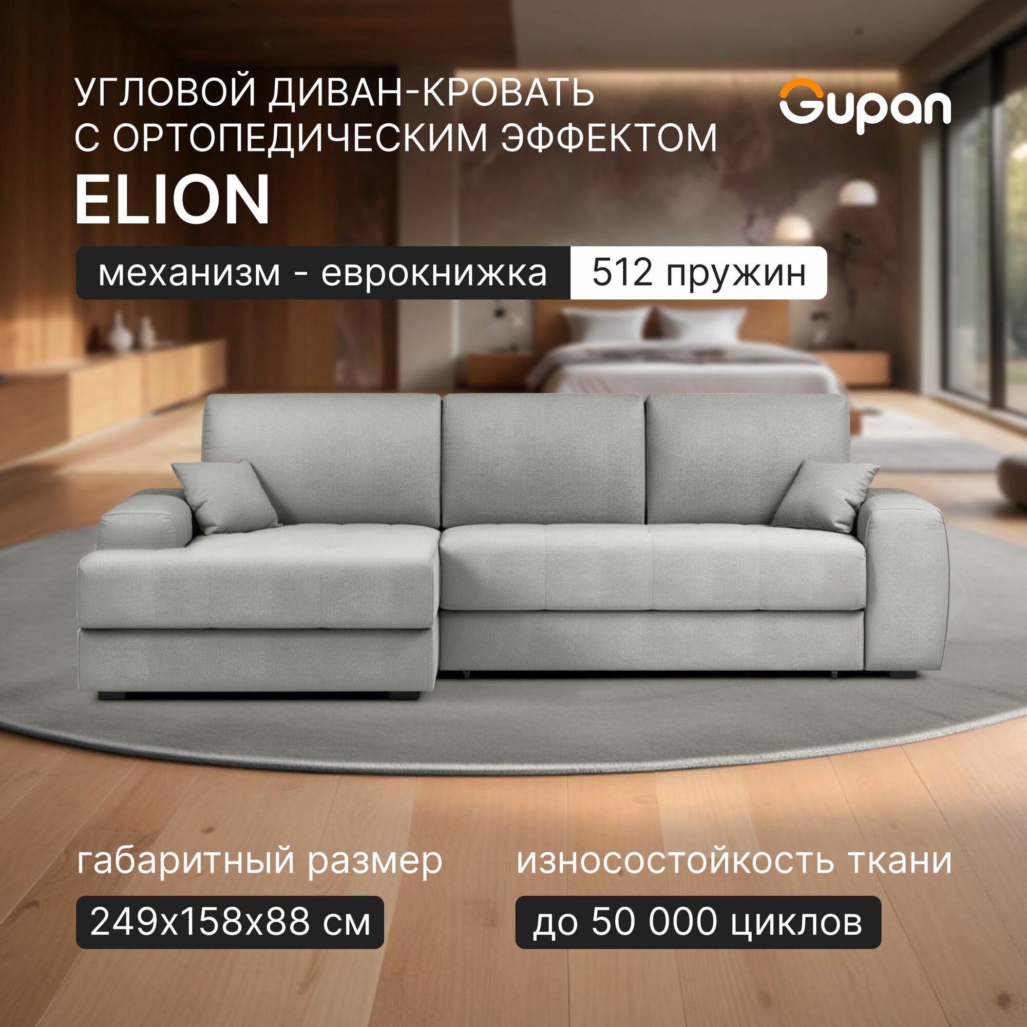 СохранитьДиван угловой Gupan Элион / Коста Велюр Amigo Ash, раскладной, механизм еврокнижка, независимые пружины, с ящиком для белья интересное: