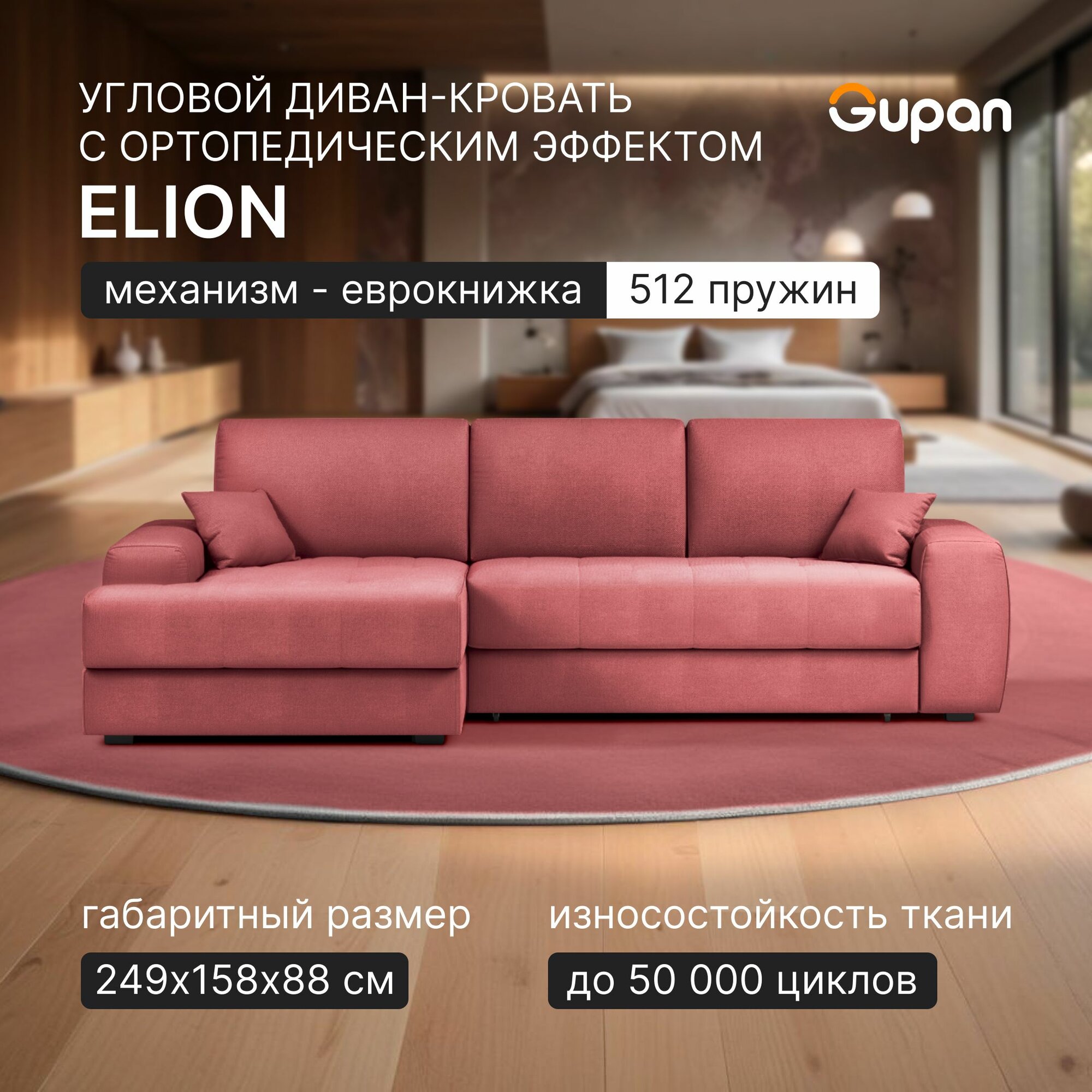 СохранитьДиван угловой Gupan Элион / Коста Велюр Amigo Berry, раскладной, механизм еврокнижка, независимые пружины, с ящиком для белья интересное: