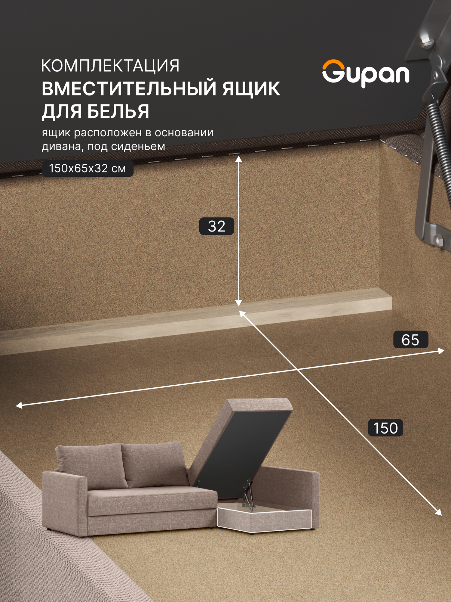 Купить Диван угловой Gupan Торонто / Кельн / Denver Рогожка Savana Latte, раскладной, механизм дельфин, беспружинный, с ящиком для белья