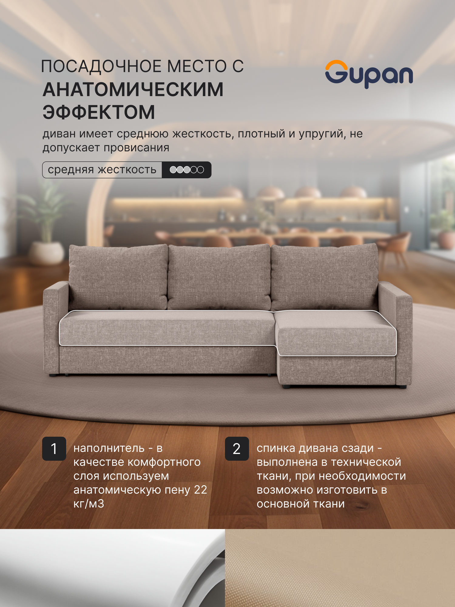 Диван угловой Gupan Торонто / Кельн / Denver Рогожка Бежевая, раскладной, механизм дельфин, беспружинный, с ящиком для белья