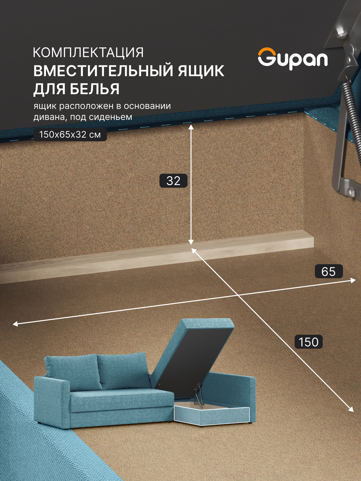Диван угловой Gupan Торонто / Кельн / Denver Рогожка Savana Lagoon, диван раскладной, механизм дельфин, беспружинный, с ящиком для белья, в гостиную, лофт