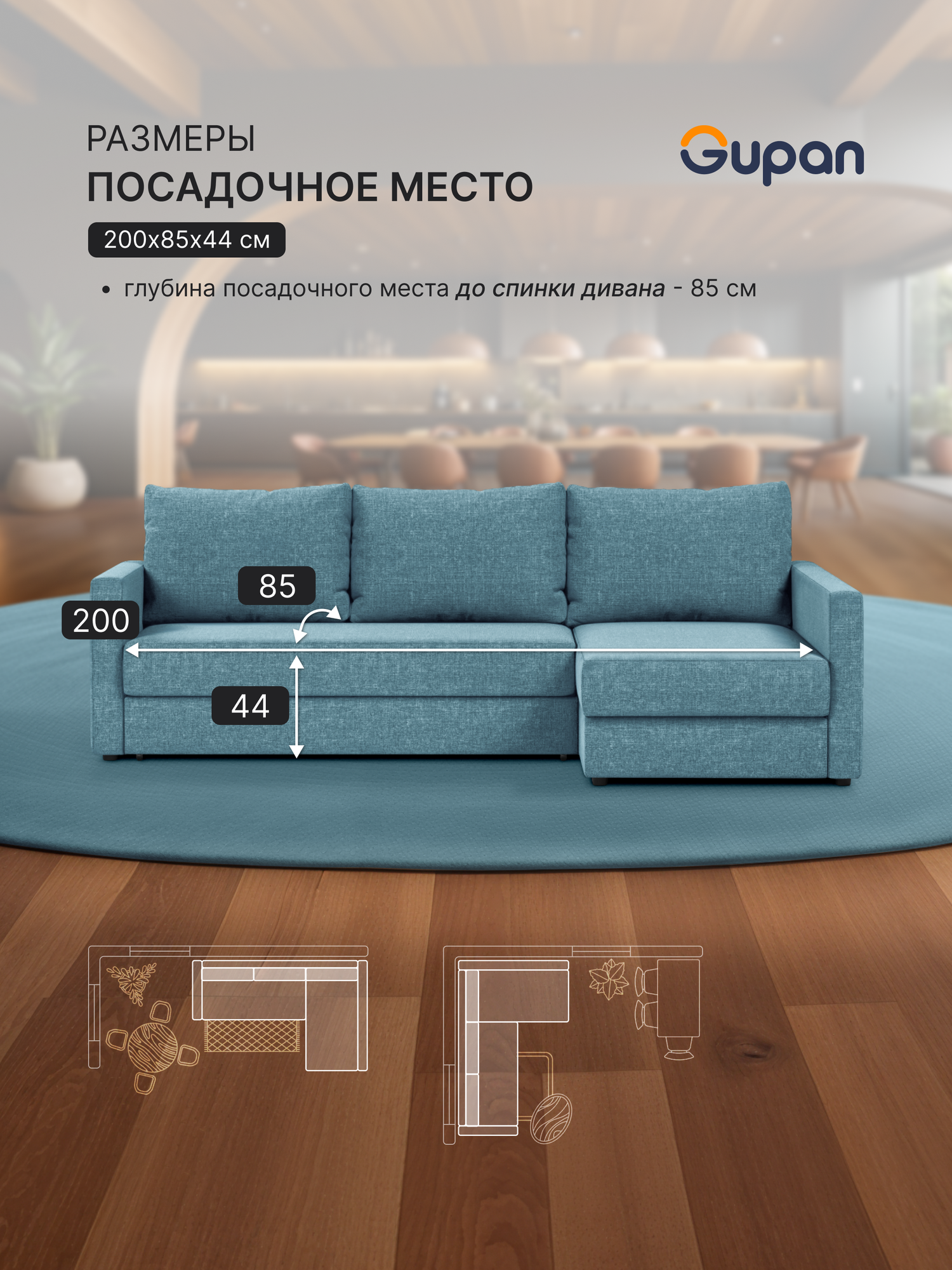Диван угловой Gupan Торонто / Кельн / Denver Велюр Amigo Lagoon, диван раскладной, механизм дельфин, беспружинный, с ящиком для белья, в гостиную, лофт