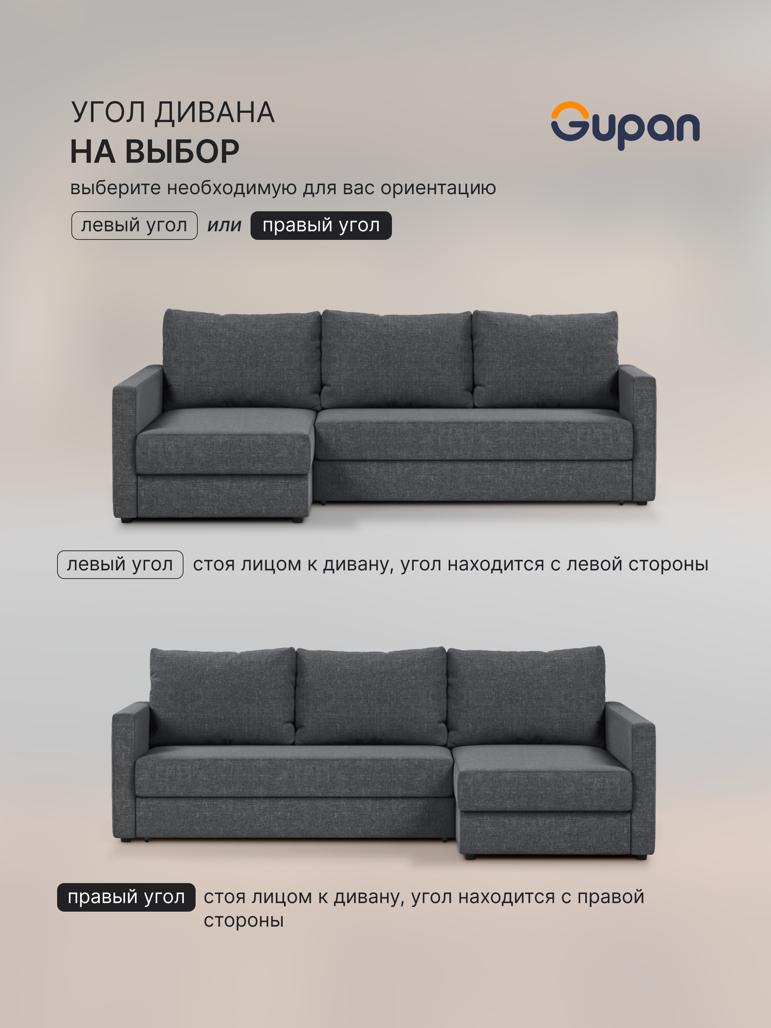СохранитьДиван угловой Gupan Торонто / Кельн / Denver Рогожка Savana Grafit, раскладной, механизм дельфин, беспружинный, с ящиком для белья интересное: