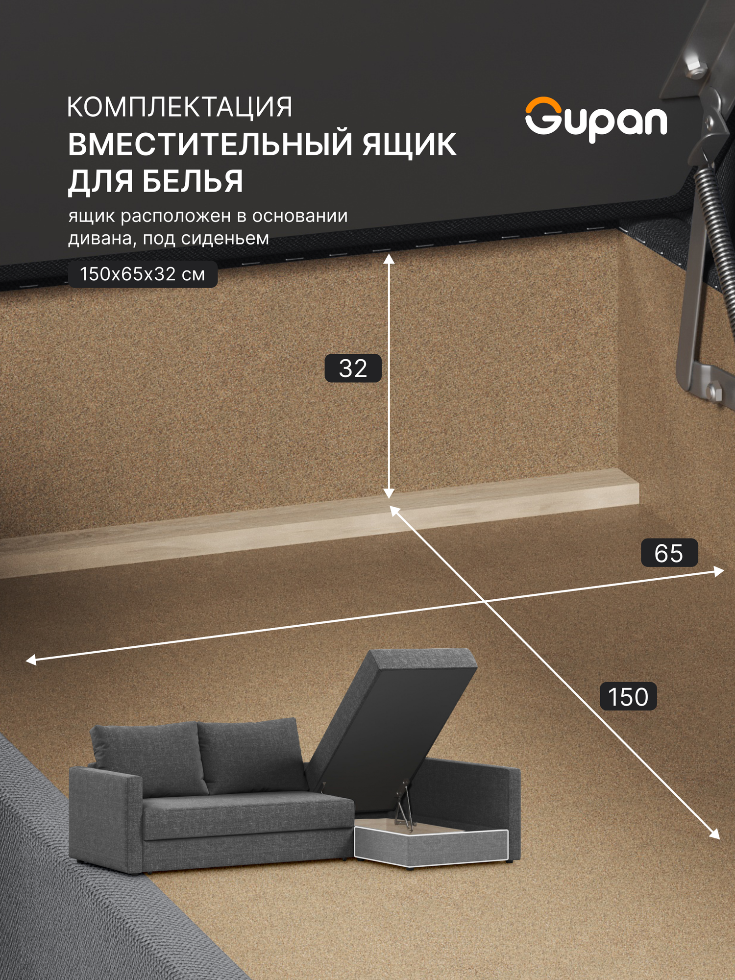 Диван угловой Gupan Торонто / Кельн / Denver Рогожка Savana Vision, раскладной, механизм дельфин, беспружинный, с ящиком для белья