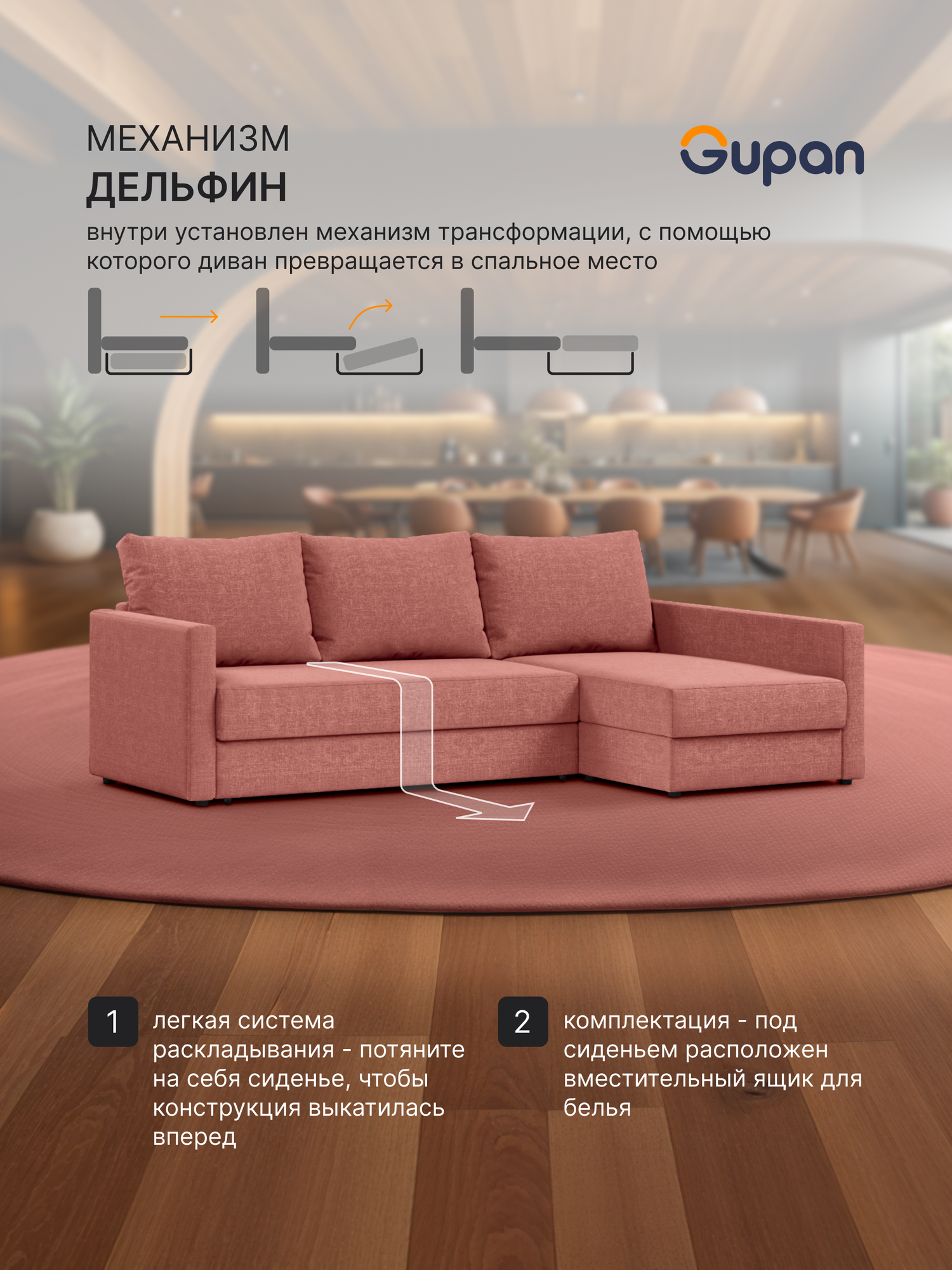 СохранитьДиван угловой Gupan Торонто / Кельн / Denver Рогожка Savana Coral, раскладной, механизм дельфин, беспружинный, с ящиком для белья интересное: