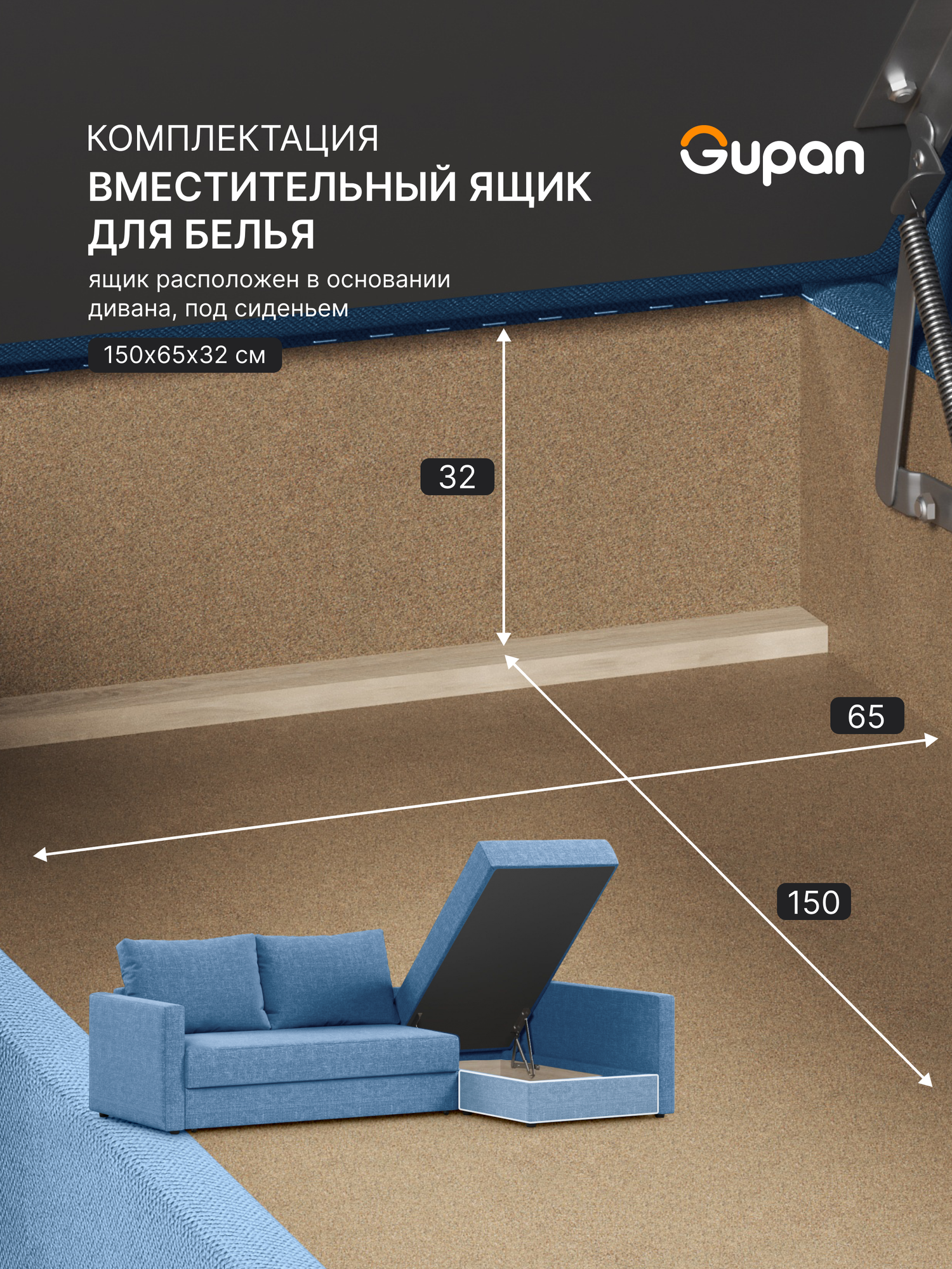 Диван угловой Gupan Торонто / Кельн / Denver Рогожка Savana Denim, диван раскладной, механизм дельфин, беспружинный, с ящиком для белья, в гостиную, лофт