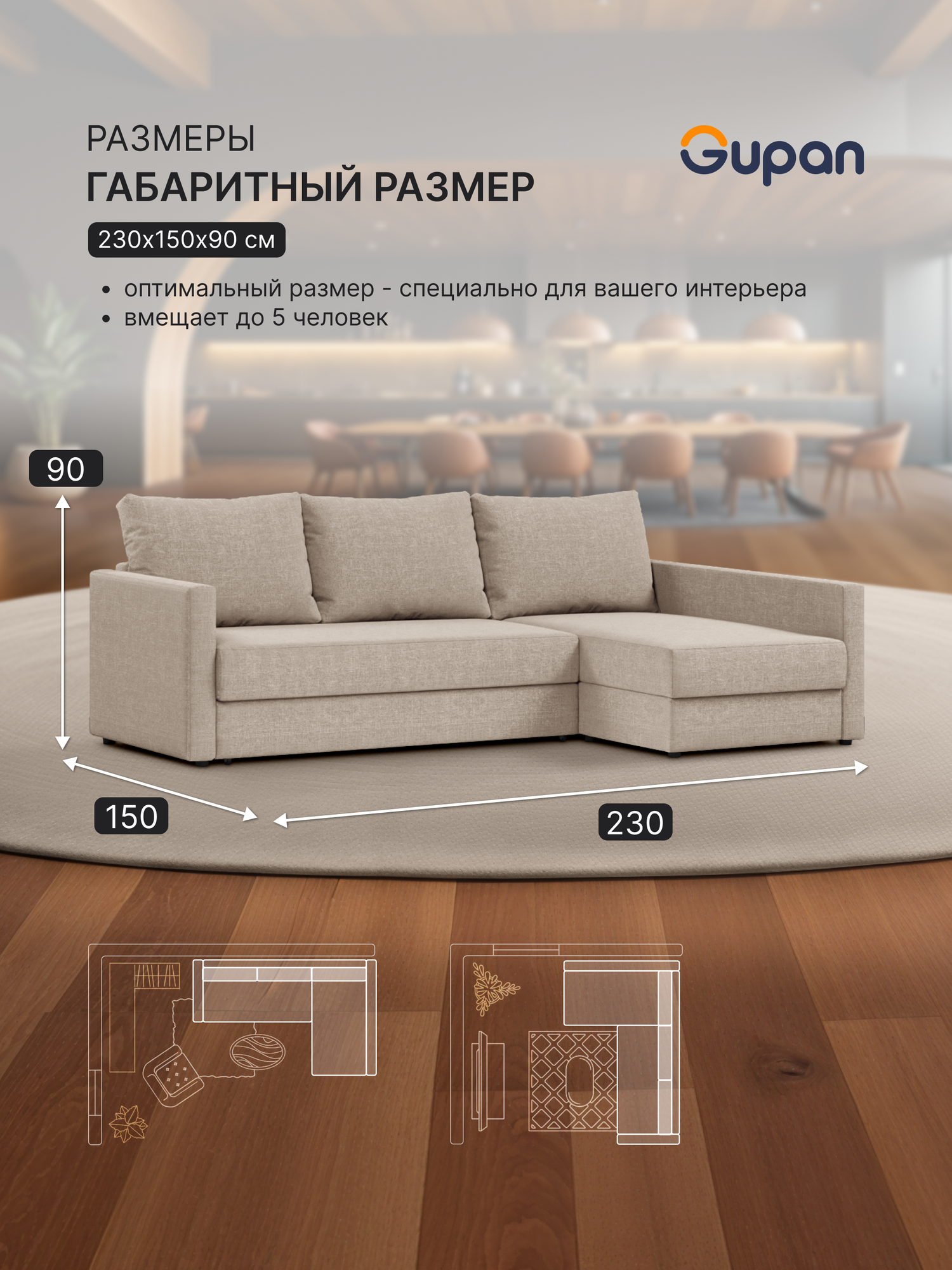 Диван угловой Gupan Торонто / Кельн / Denver Рогожка Бежевая, раскладной, механизм дельфин, беспружинный, с ящиком для белья