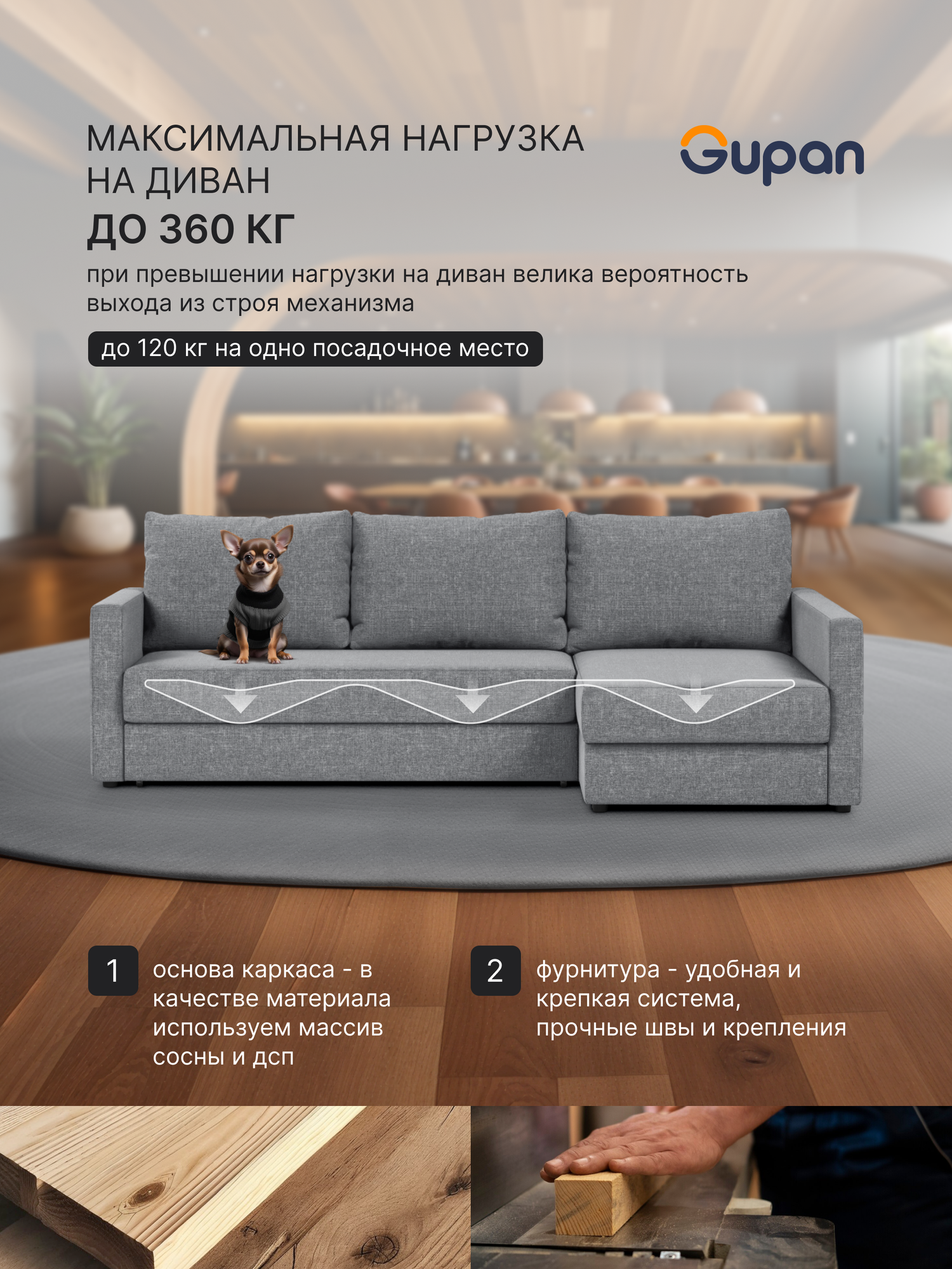 СохранитьДиван угловой Gupan Торонто / Кельн / Denver Рогожка Savana Mouse, раскладной, механизм дельфин, беспружинный, с ящиком для белья интересное: