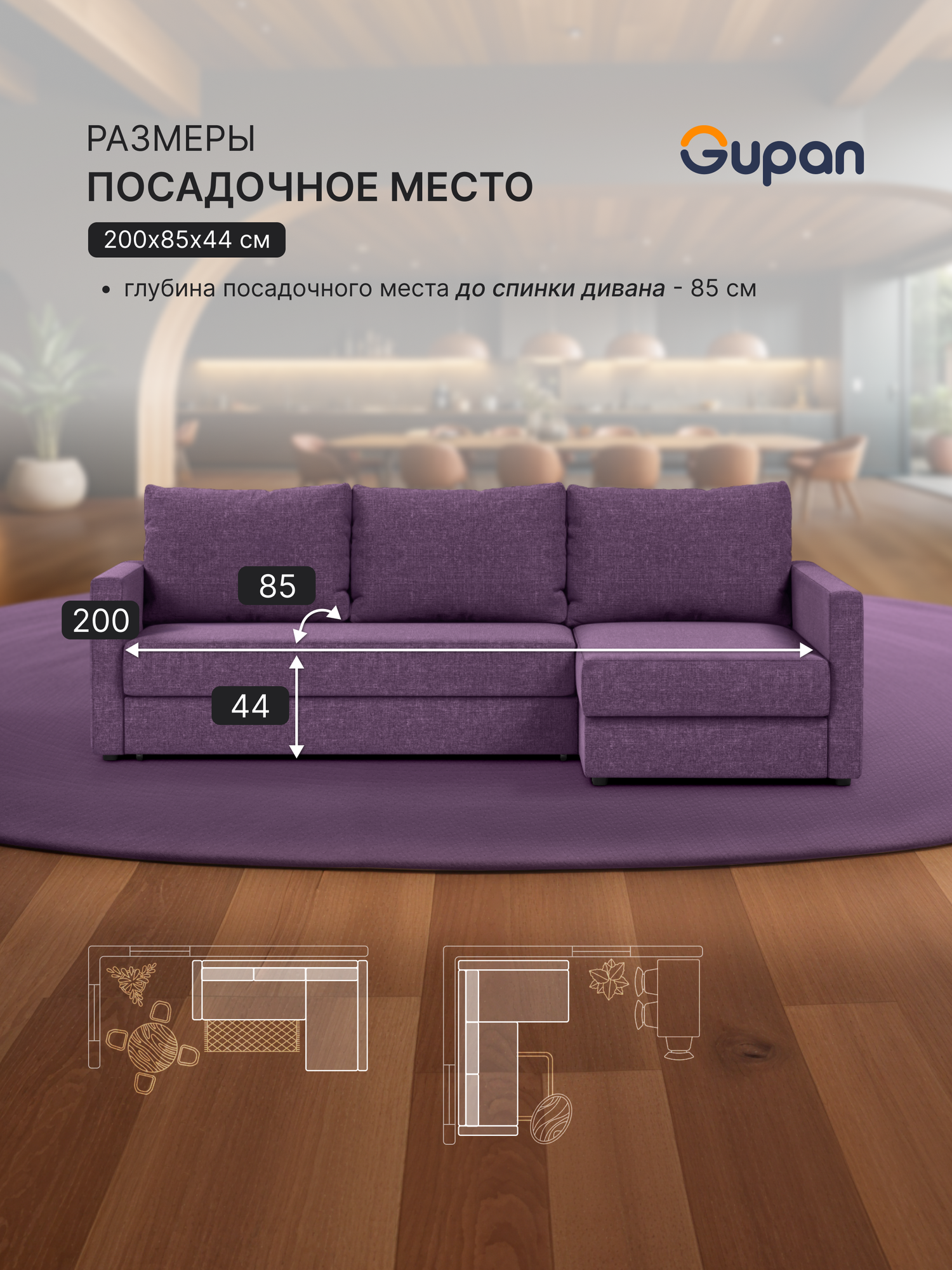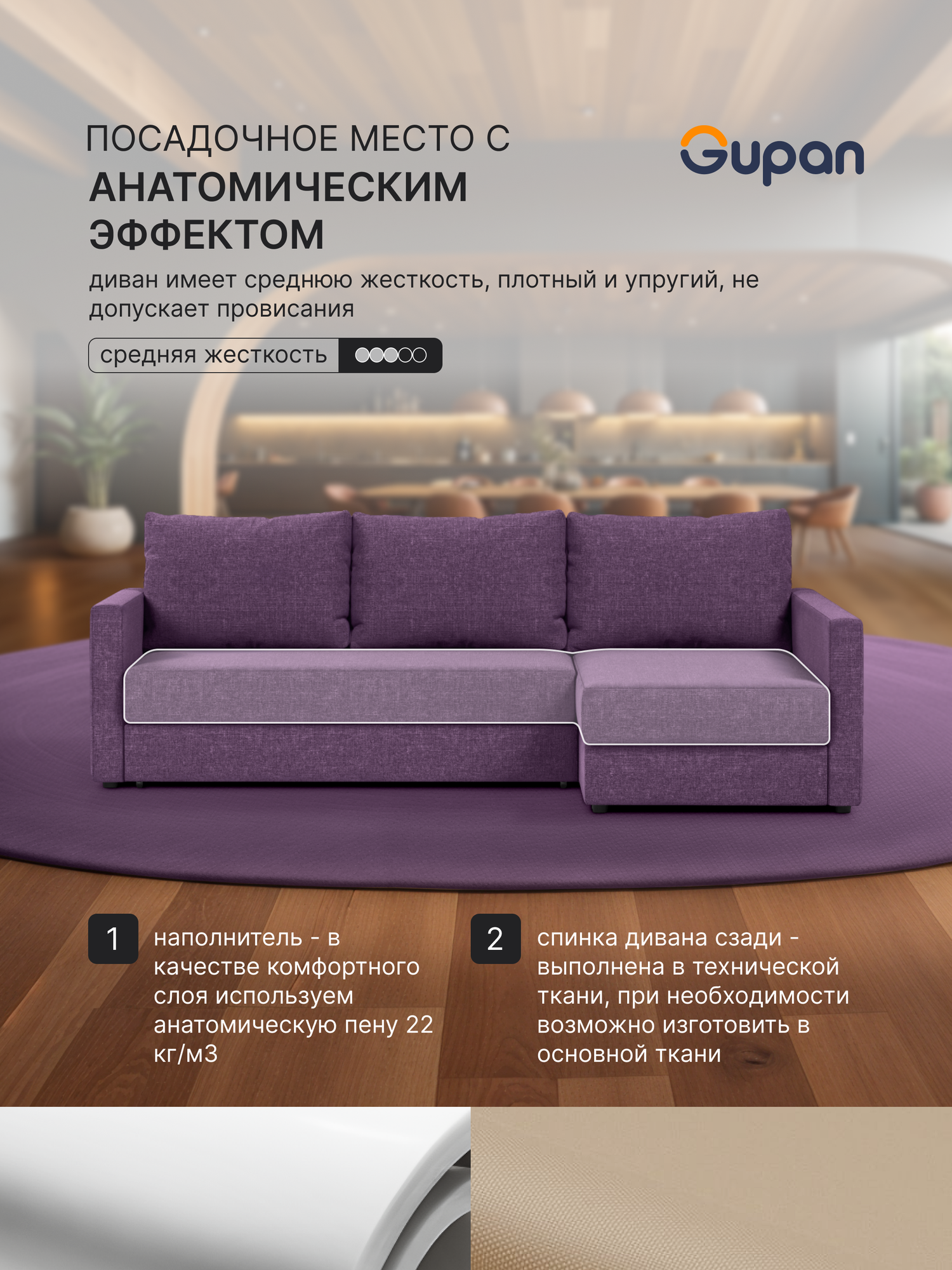 СохранитьДиван угловой Gupan Торонто / Кельн / Denver Рогожка Savana Violet, раскладной, механизм дельфин, беспружинный, с ящиком для белья интересное: