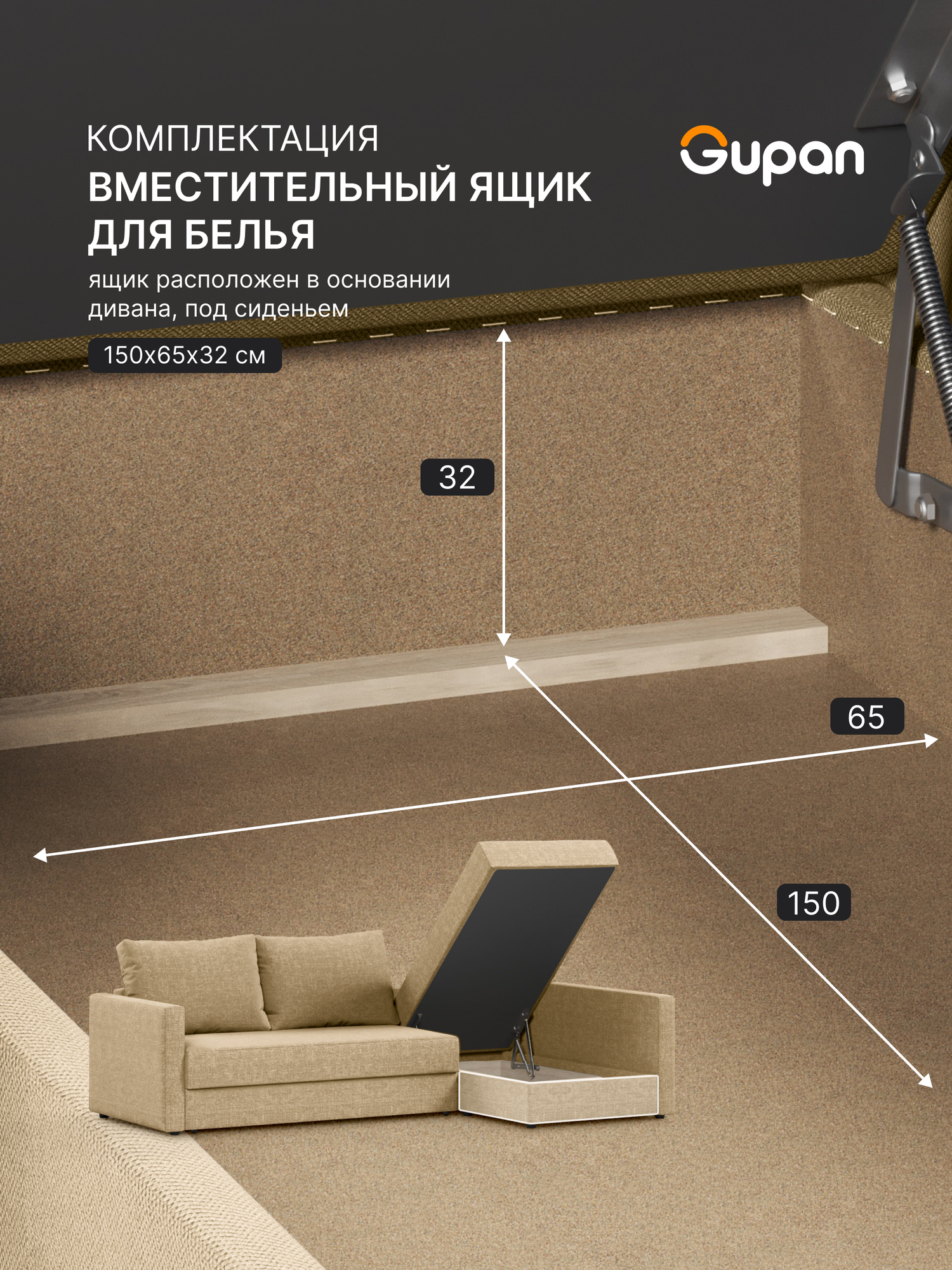Диван угловой Gupan Торонто / Кельн / Denver Рогожка Бежевая, раскладной, механизм дельфин, беспружинный, с ящиком для белья