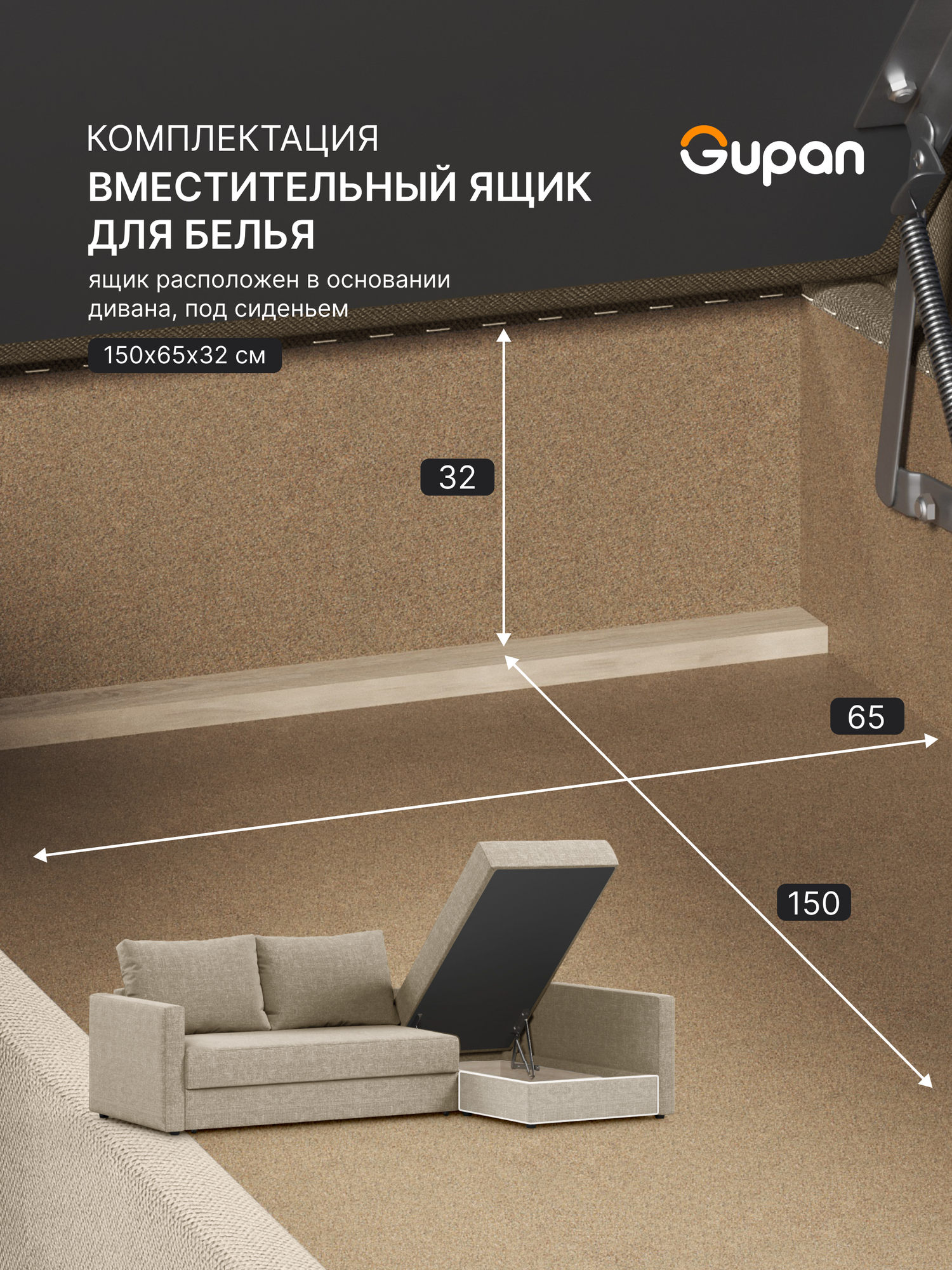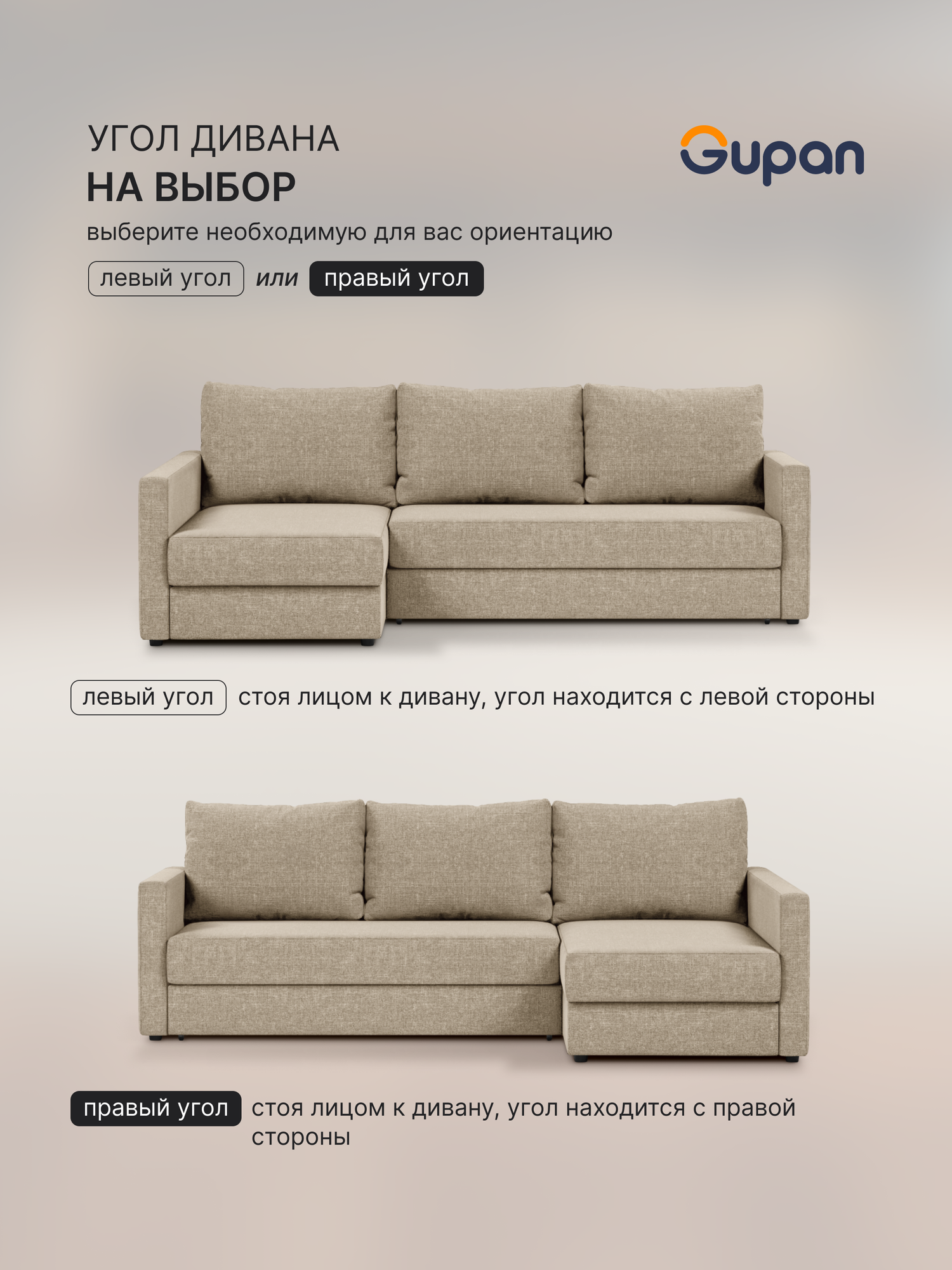 Купить Диван угловой Gupan Торонто / Кельн / Denver Рогожка Бежевая, раскладной, механизм дельфин, беспружинный, с ящиком для белья