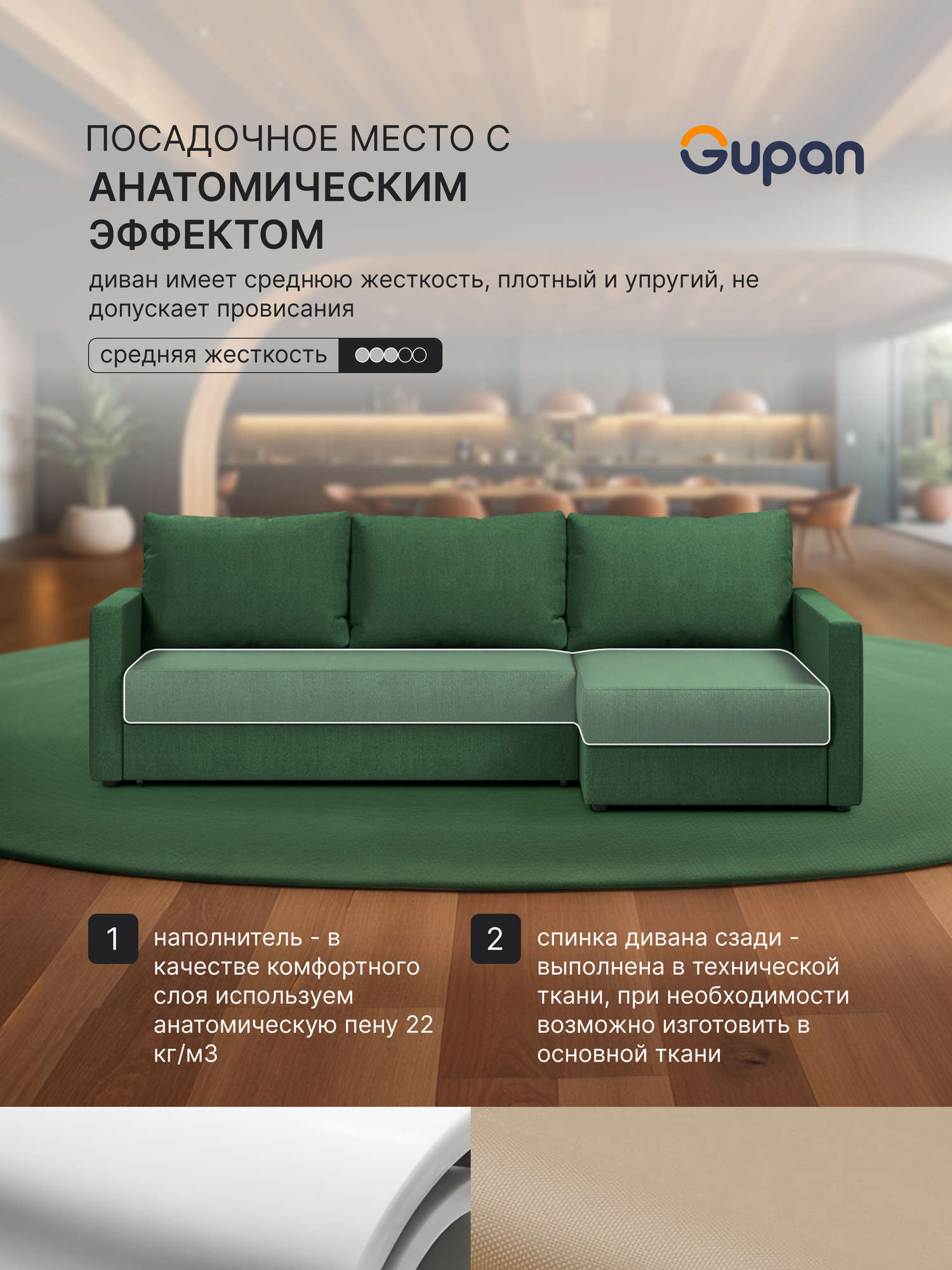Диван угловой Gupan Торонто / Кельн / Denver Рогожка Savana Green, диван раскладной, механизм дельфин, беспружинный, с ящиком для белья, в гостиную, лофт
