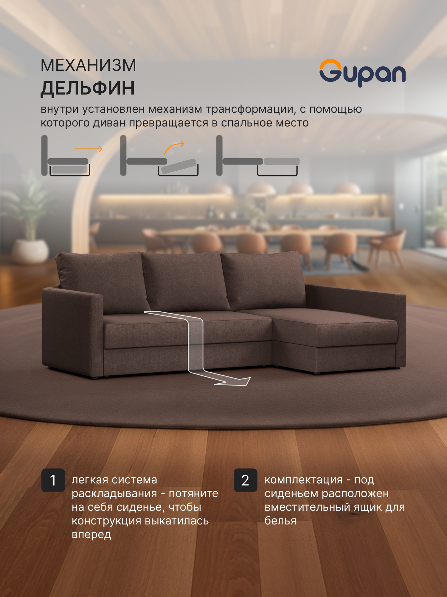 Диван угловой Gupan Торонто / Кельн / Denver Рогожка Savana Chocolate, раскладной, механизм дельфин, беспружинный, с ящиком для белья