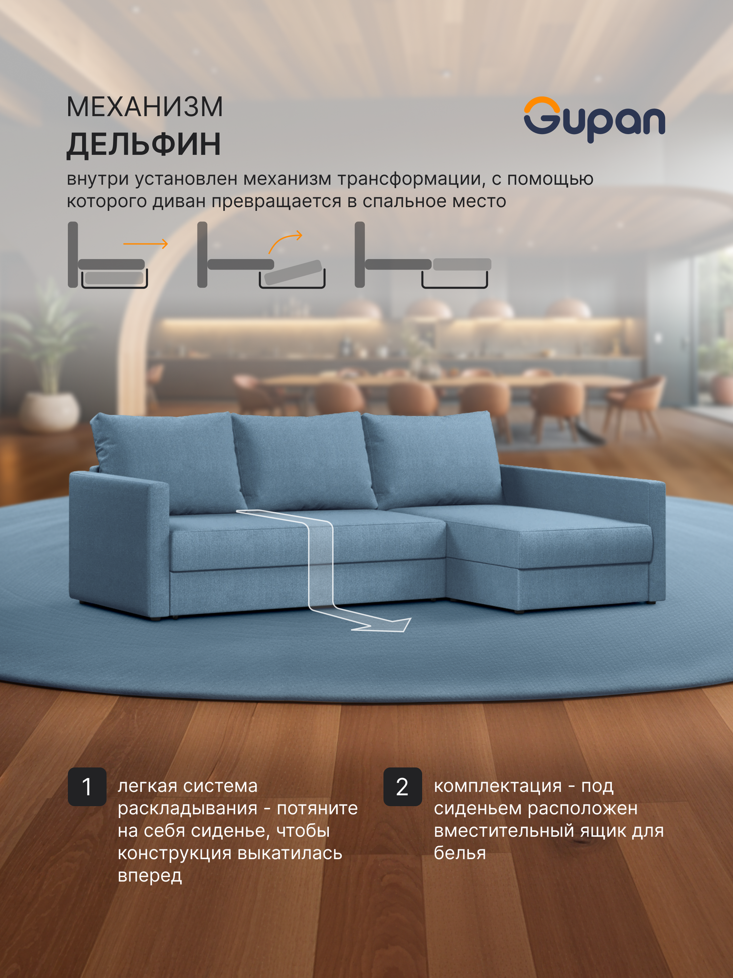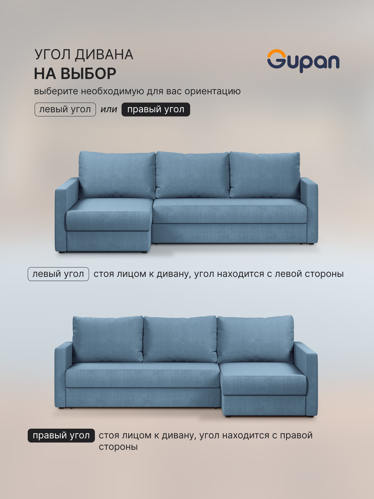 Диван угловой Gupan Торонто / Кельн / Denver Рогожка Savana Blue, раскладной, механизм дельфин, беспружинный, с ящиком для белья