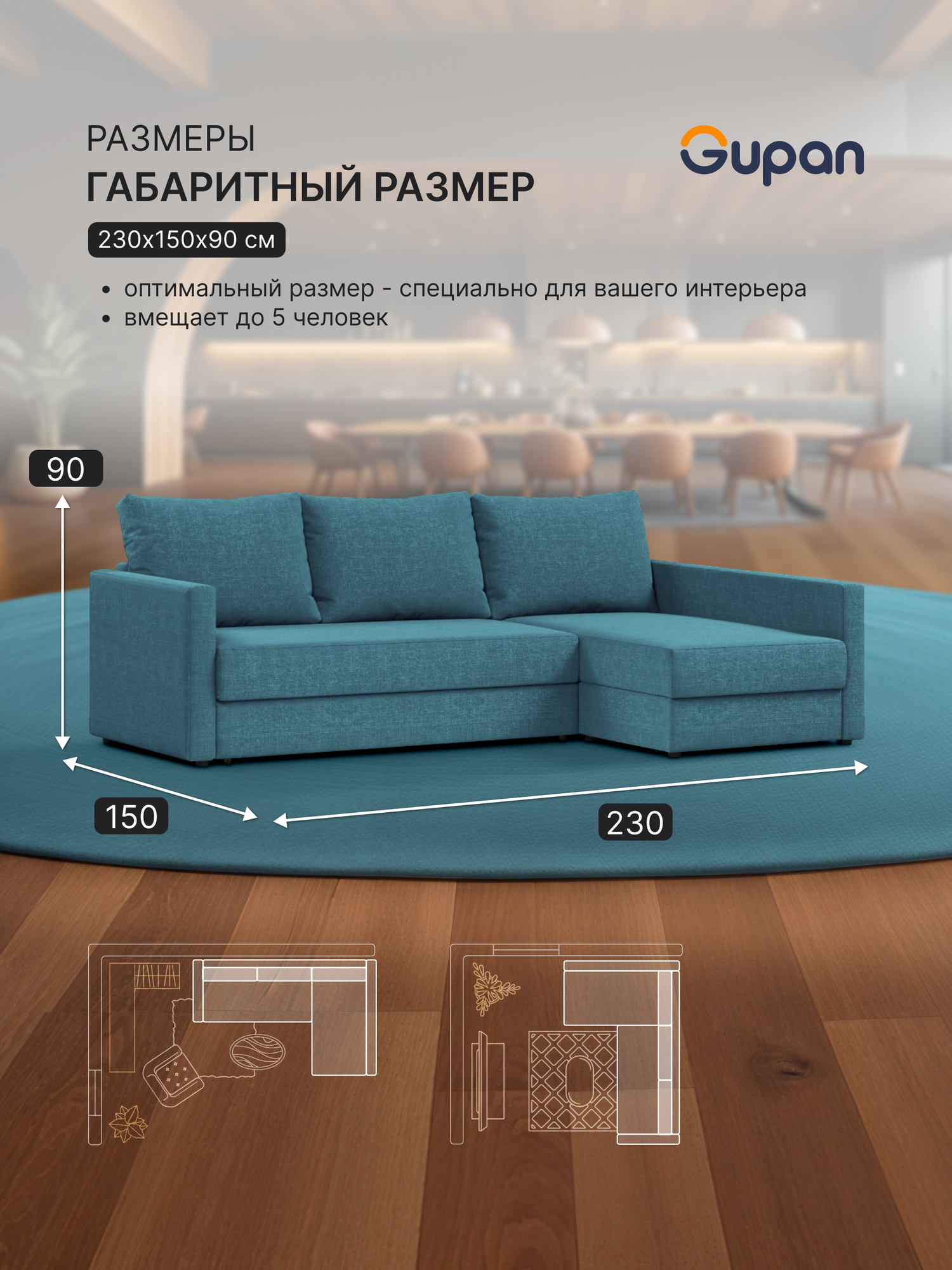 СохранитьДиван угловой Gupan Торонто / Кельн / Denver Рогожка Savana Lagoon, раскладной, механизм дельфин, беспружинный, с ящиком для белья интересное: