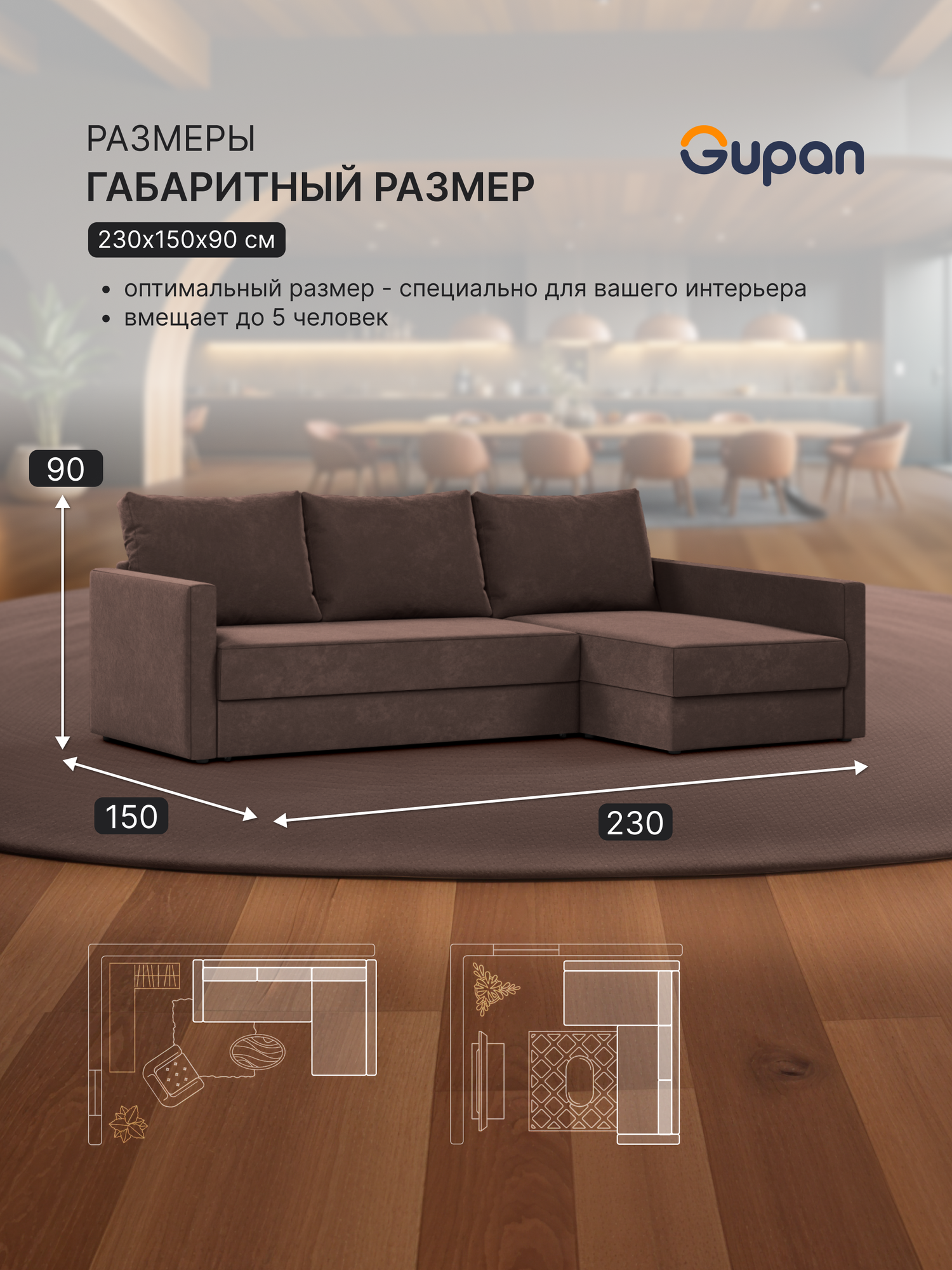 СохранитьДиван угловой Gupan Торонто / Кельн / Denver Велюр Bingo Chocolate, раскладной, механизм дельфин, беспружинный, с ящиком для белья интересное: