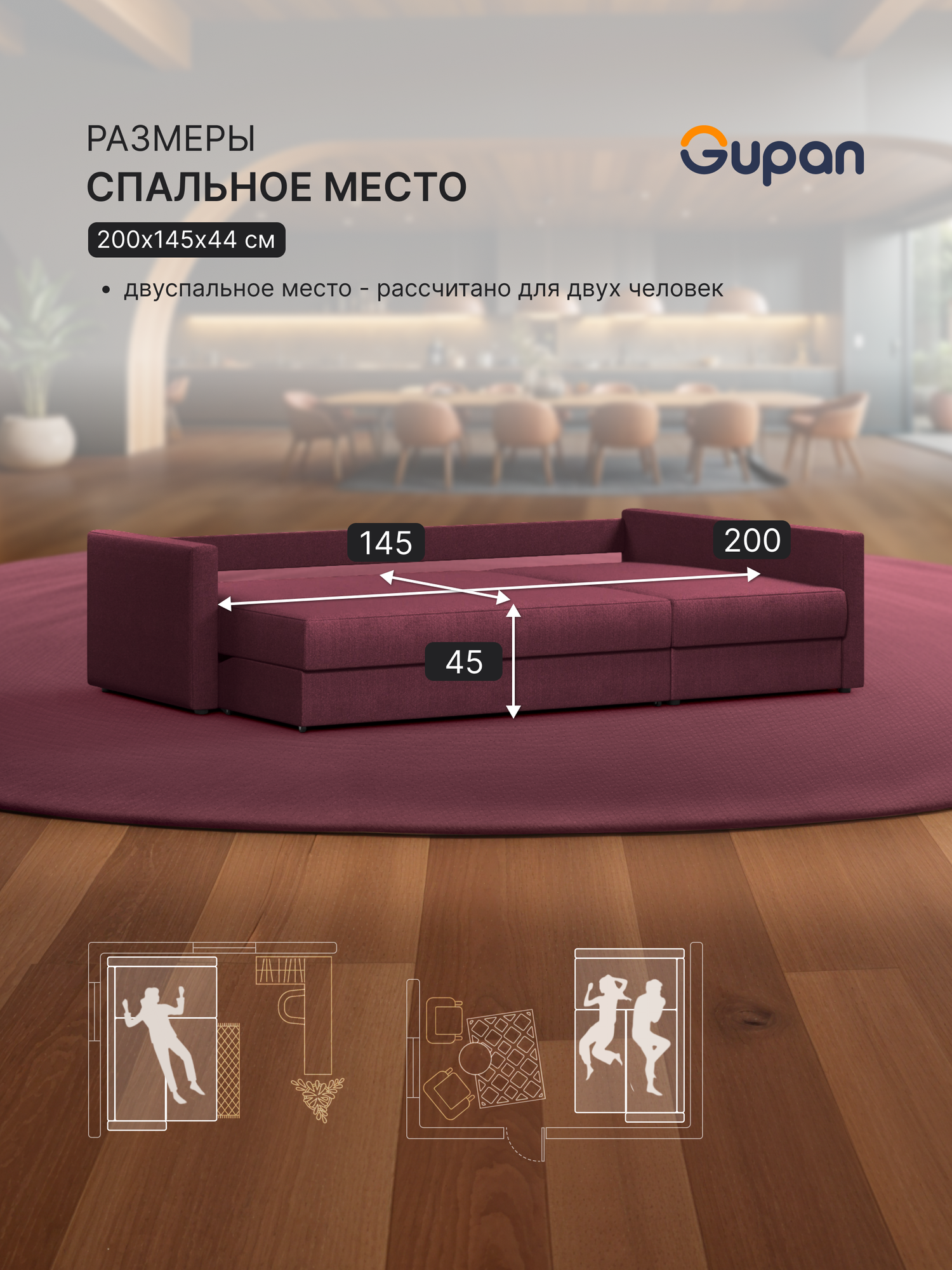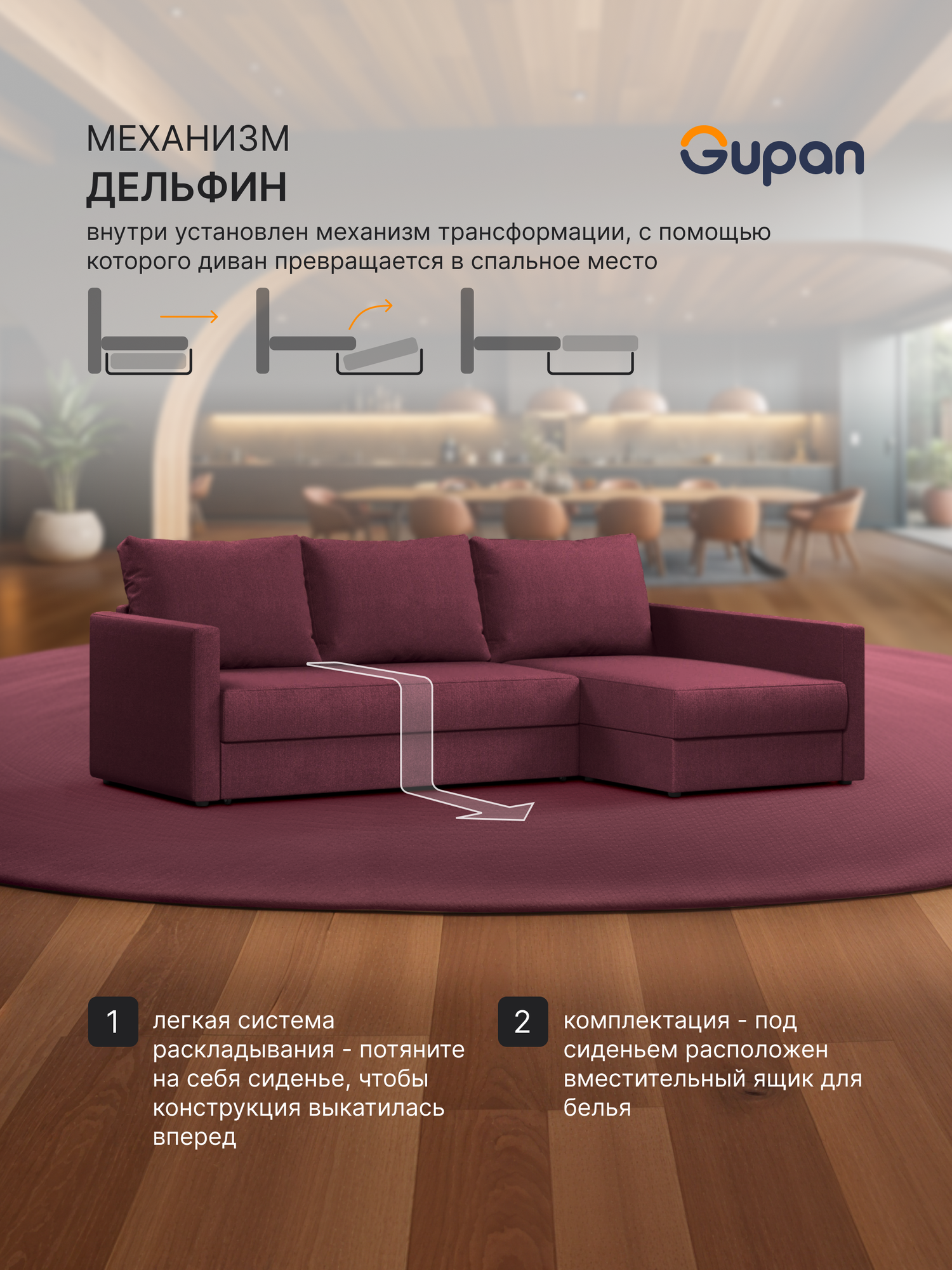 Диван угловой Gupan Торонто / Кельн / Denver Рогожка Savana Berry, раскладной, механизм дельфин, беспружинный, с ящиком для белья