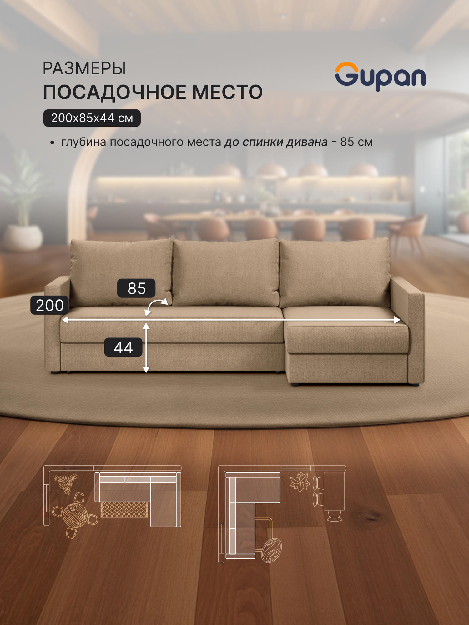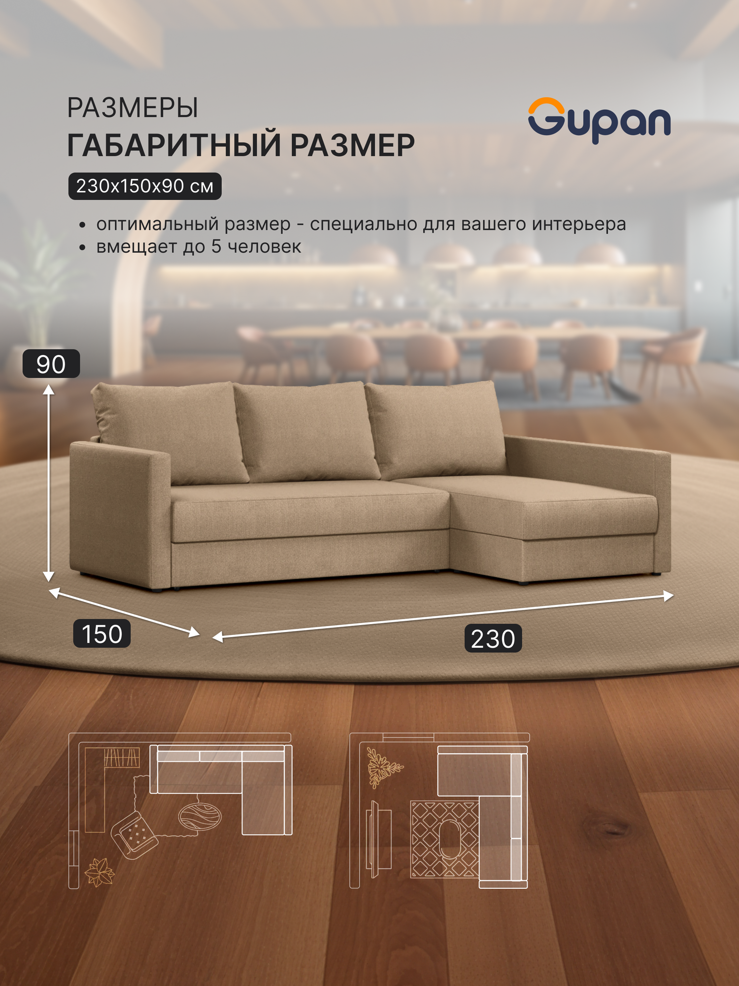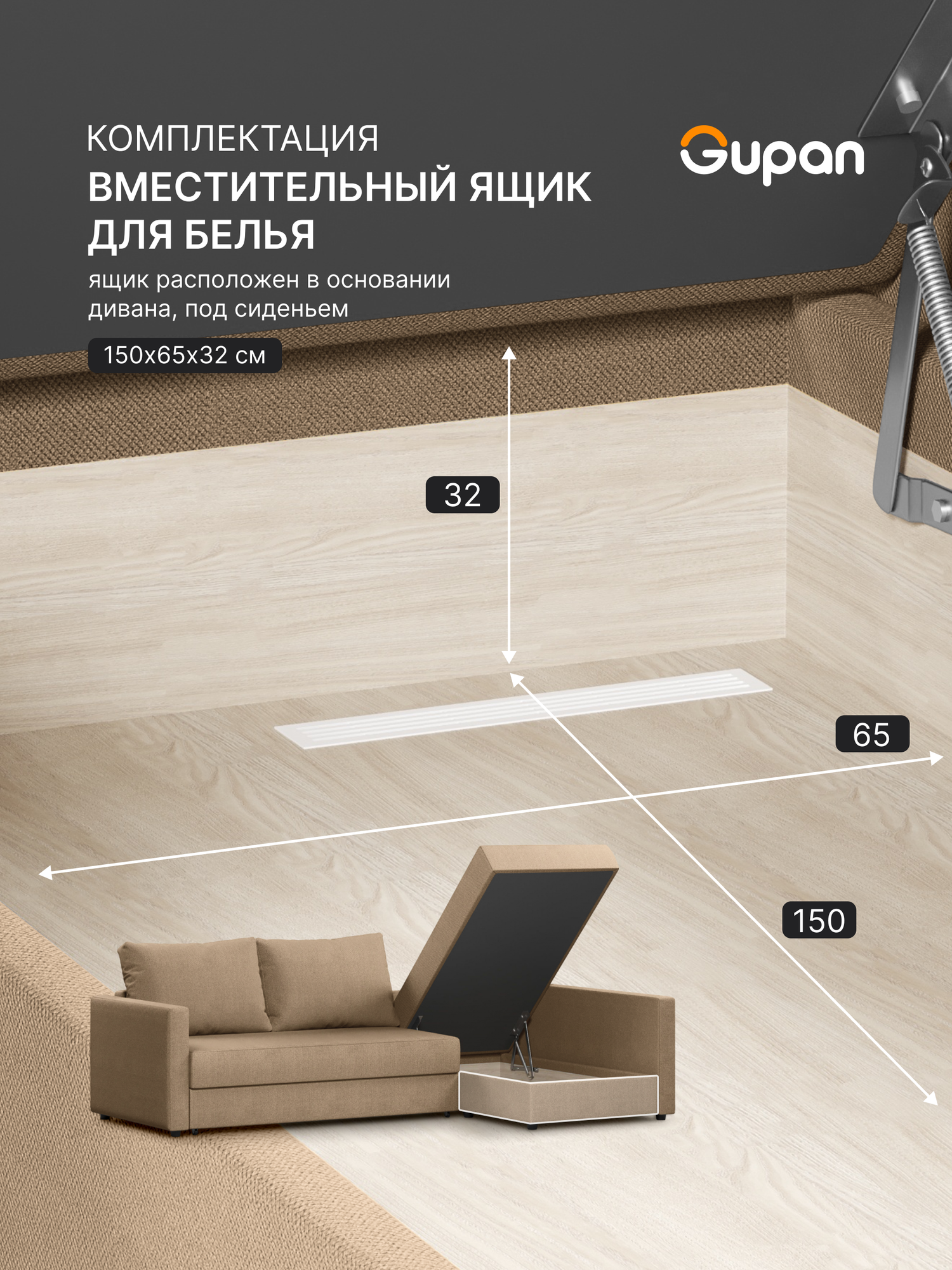 Диван угловой Gupan Торонто / Кельн / Denver Рогожка Бежевая, раскладной, механизм дельфин, беспружинный, с ящиком для белья