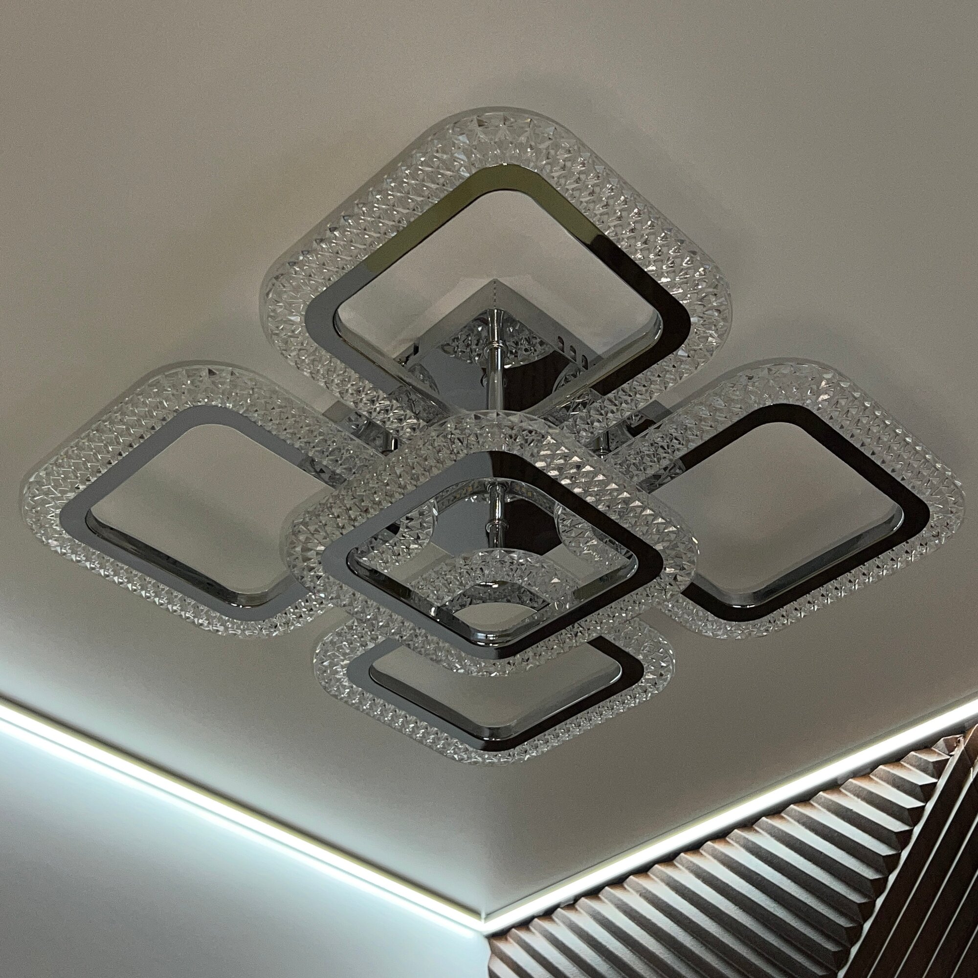 Купить Люстра светодиодная с пультом Светкомет хром прозрачная 80 Вт