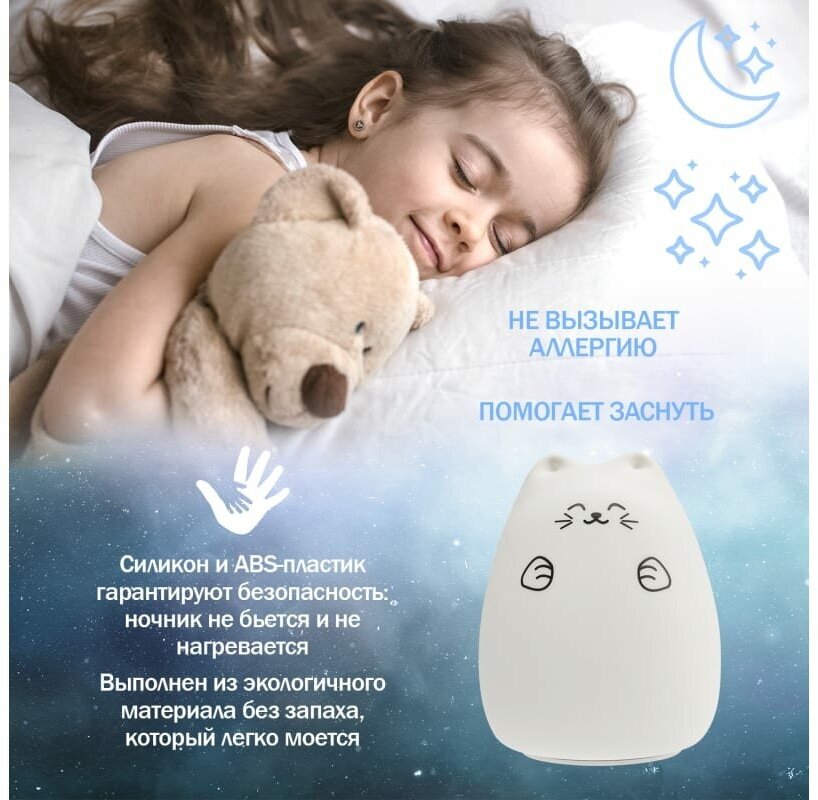 Детский беспроводной силиконовый светильник-ночник USB Котик с 3 режимами работы интересное: