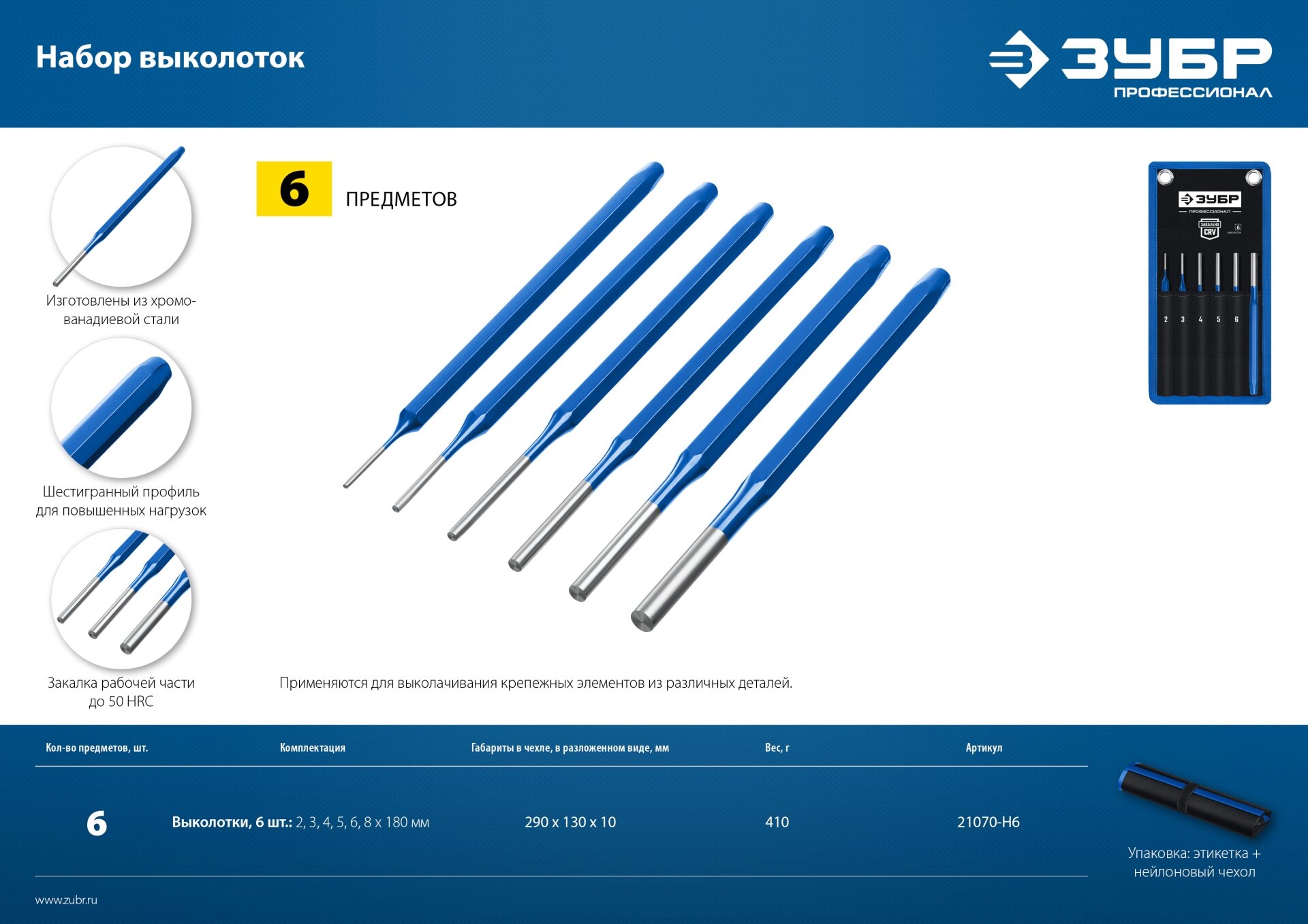 Набор выколоток ЗУБР в чехле, 6 предметов 21070-H6 интересное: