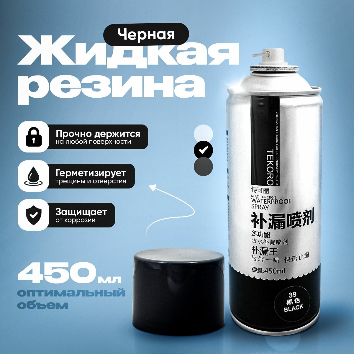 Купить Жидкая резина 450мл черная 3 в 1 герметик спрей в баллончике - клей строительный для ванной, кухни, сантехники, плитки водонепроницаемый