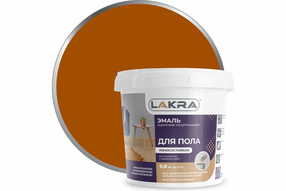 Эмаль акриловая (АК) Лакра для пола красно-коричневый 0.9 кг