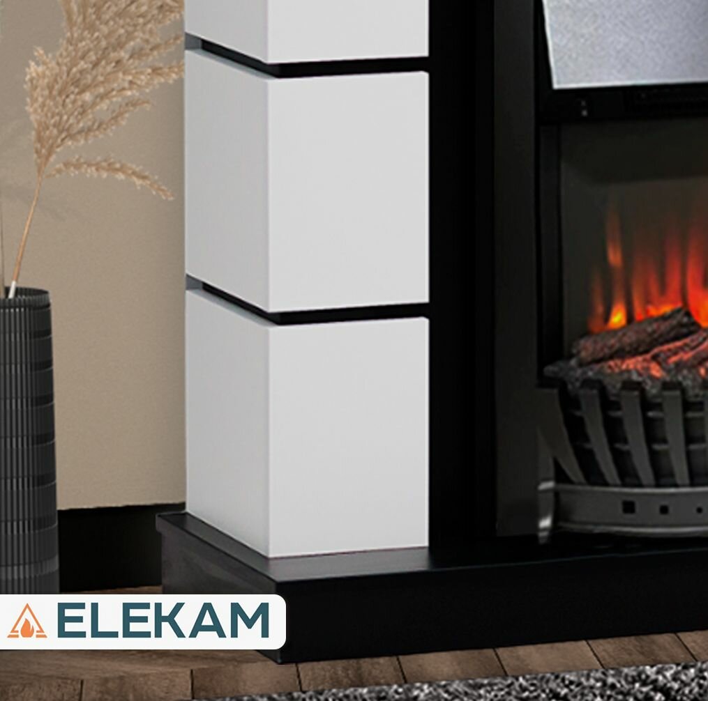 Электрический камин ELEKAM NEO белый+чёрный с очагом Vegas с обогревом, пультом управления и потрескиванием дров