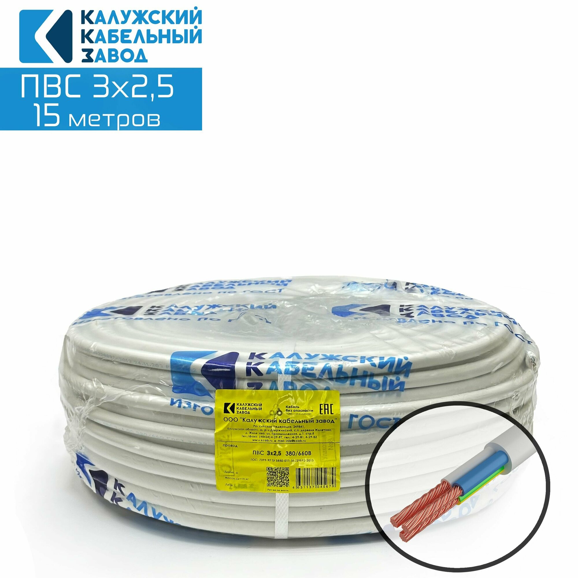 Провод ПВС 3х2,5 ГОСТ Калужский кабельный завод. Белый. 15 метров