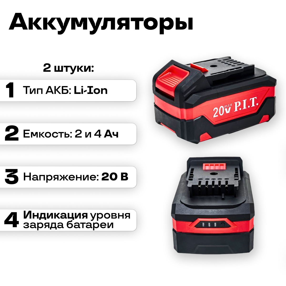 | Аккумуляторная система | P.I.T. OnePower 20 V |