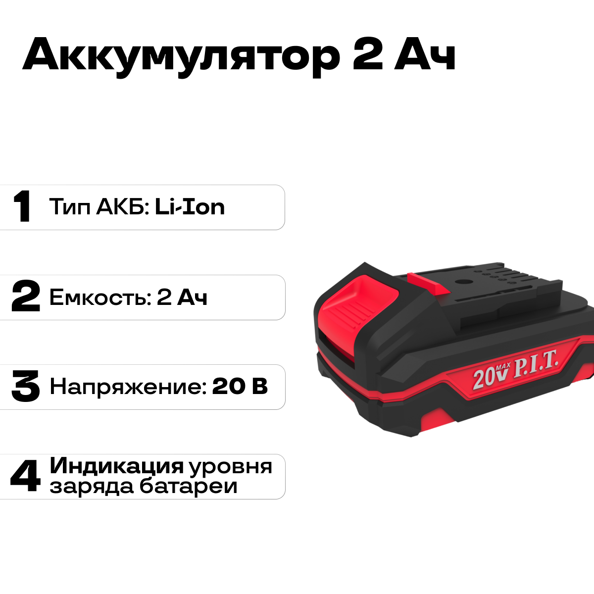 | Аккумуляторная система | P.I.T. OnePower 20 V |