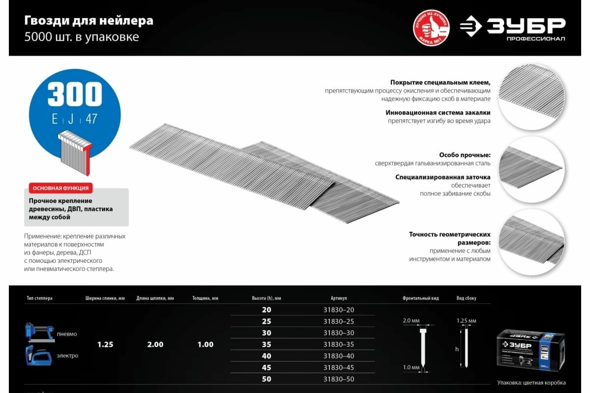 Особотвердые гвозди для нейлера ЗУБР Профессионал тип 300, 30 мм, 5000 шт. 31830-30 интересное: