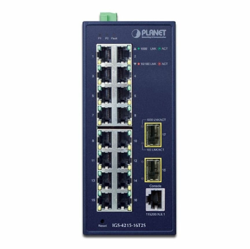 Купить Коммутатор Planet IP30 Industrial L2/L4 16-Port 10/100/1000T + 2-Port 100/1000X SFP Managed Switch IGS-4215-16T2S