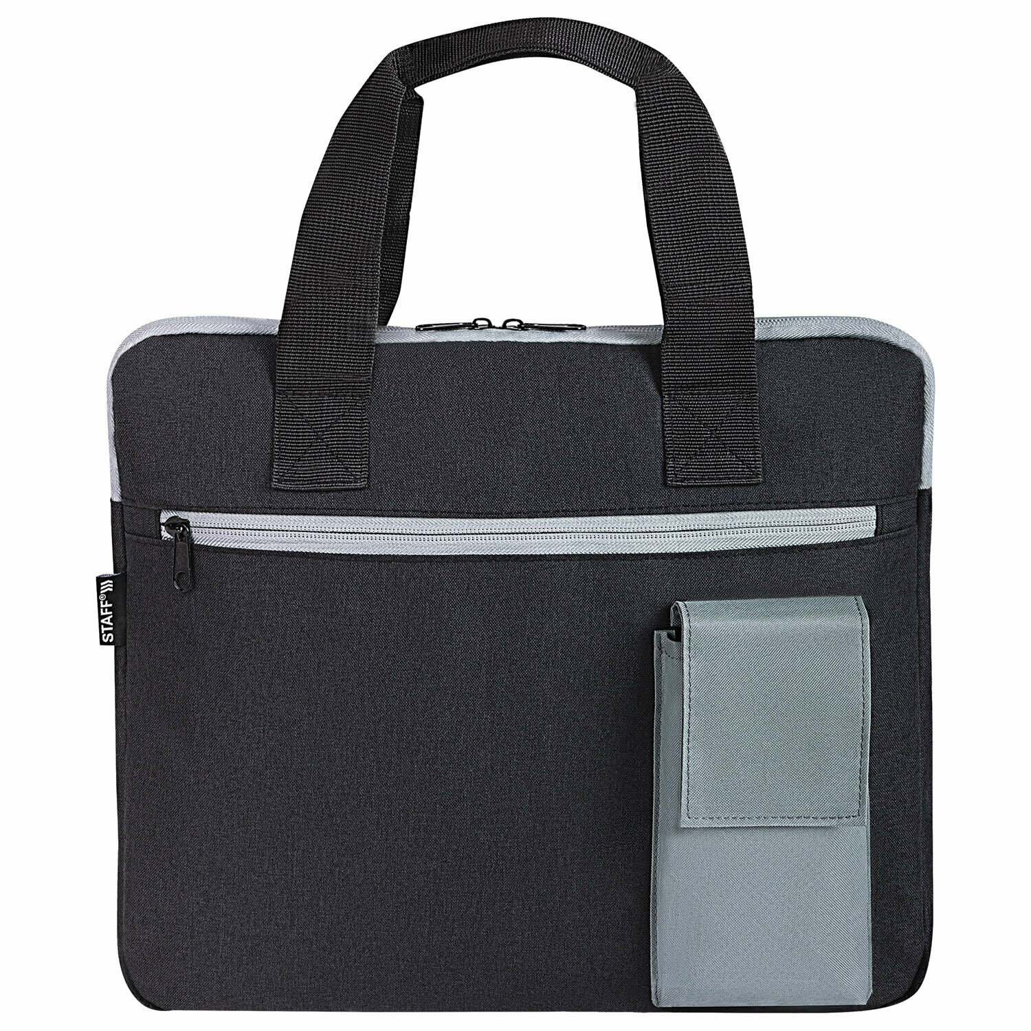 Сумка для документов Staff Delegate на молнии, два кармана, полиэстер, черная/серая, 30х34х2 см, 272619