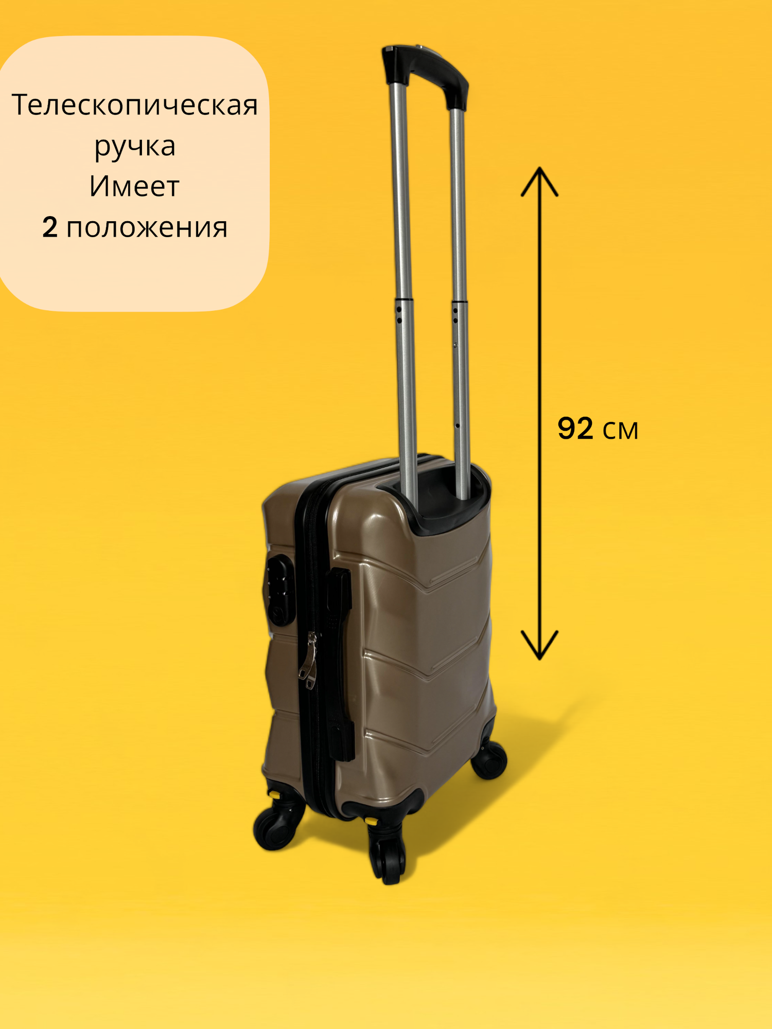 Чемодан на колесах Ручная кладь 40х30х20 золотистый