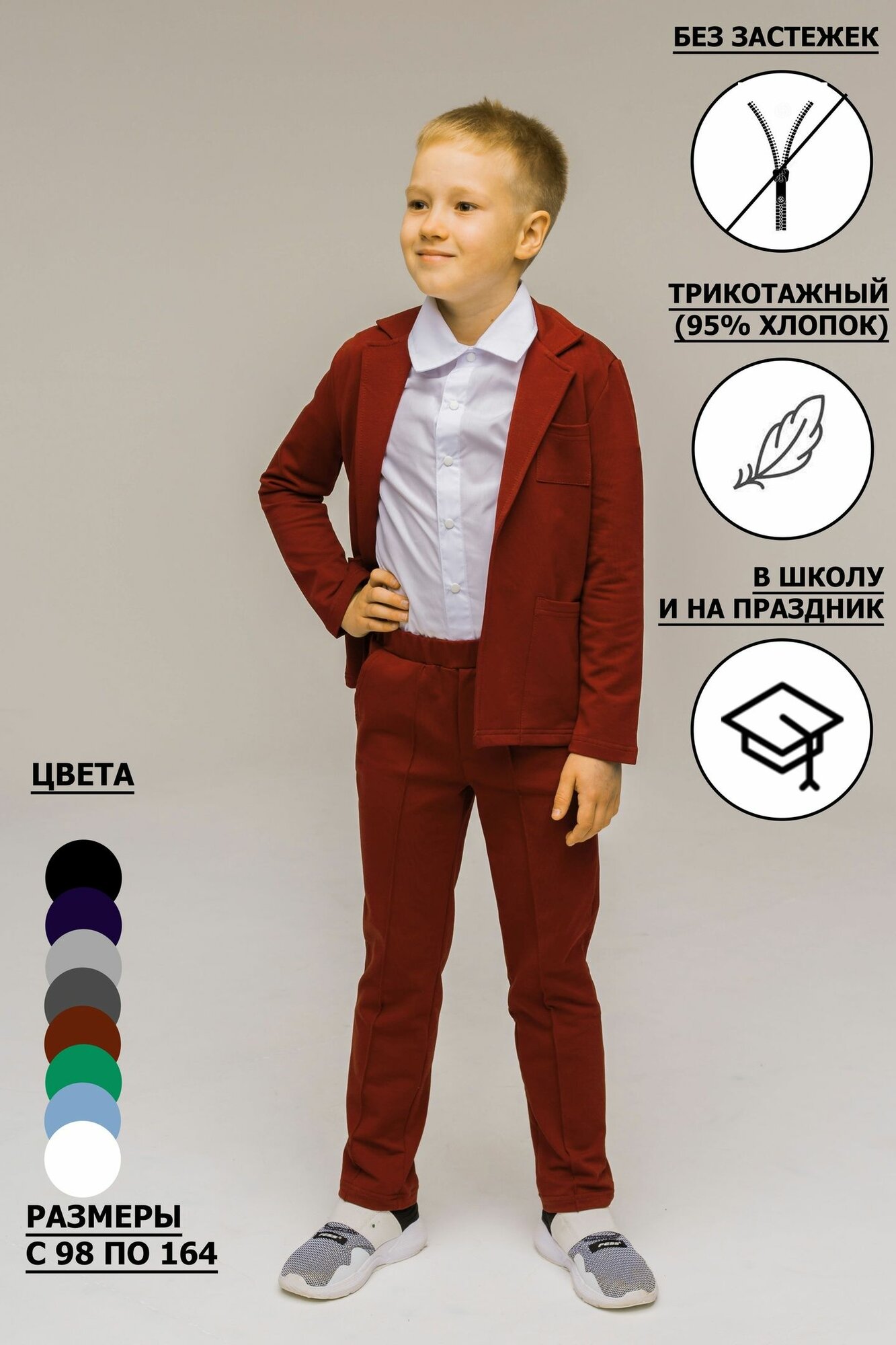 Костюм для мальчика классический трикотажный / в школу / на праздник / на прогулку / терракотовый / коричнево-красный 110