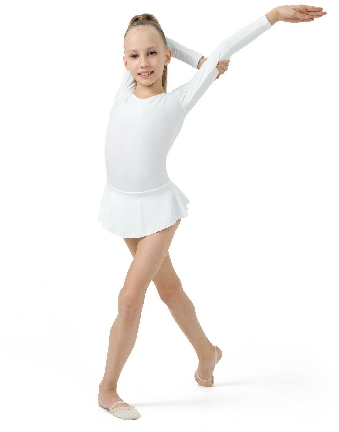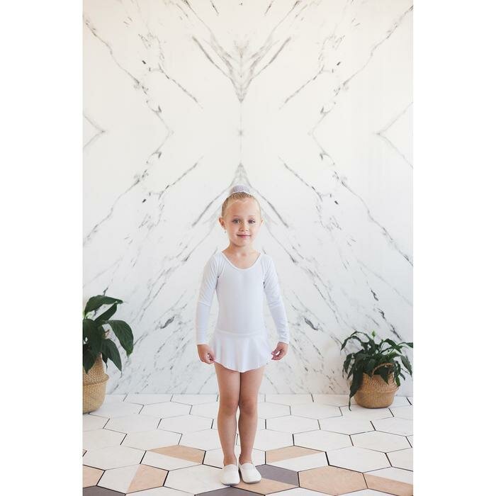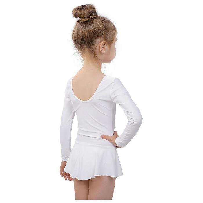 Купальник гимнастический с юбкой, с длинным рукавом, цвет белый