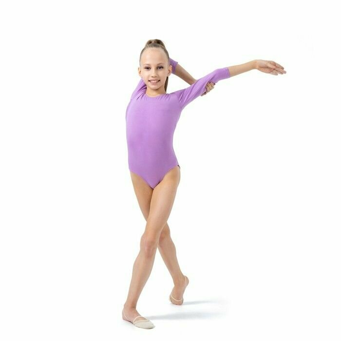 Купальник гимнастический с рукавом 3/4, лайкра, цвет сирень, размер 28