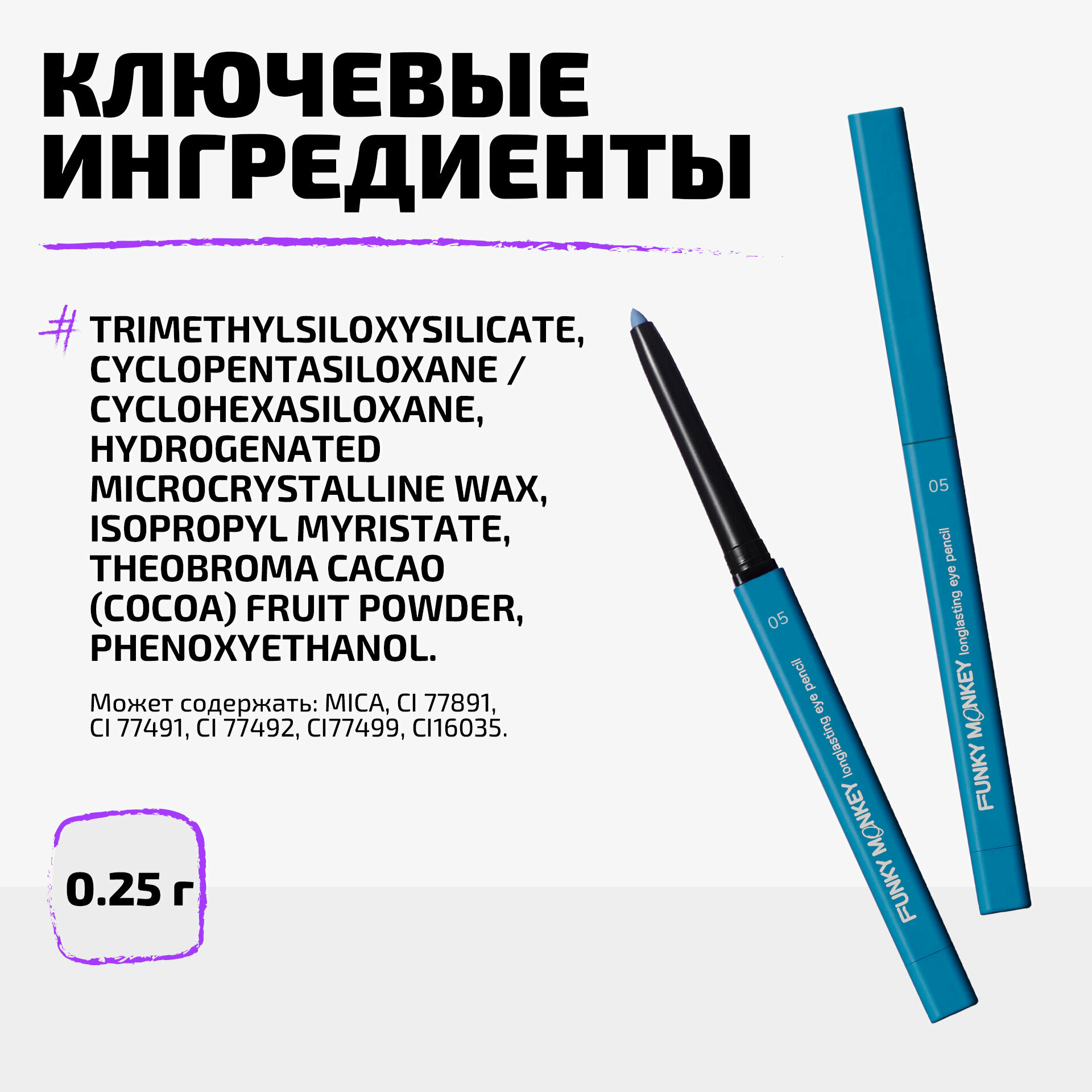 СохранитьFUNKY MONKEY Карандаш для глаз стойкий Longlasting eye pencil, 0,25 г, 05 интересное: