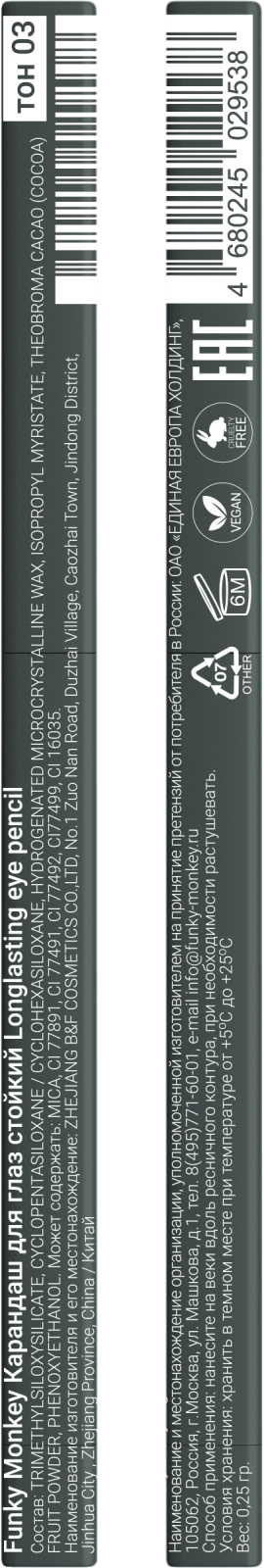 Купить FUNKY MONKEY Карандаш для глаз стойкий Longlasting eye pencil, 0,25 г, 03